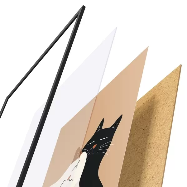 Plagát sa skladá z rámu, plexiskla, vytlačeného obrazu a podkladu z drevotriesky. Plagát možno okamžite zavesiť na stenu vďaka úchytom na zadnej strane.