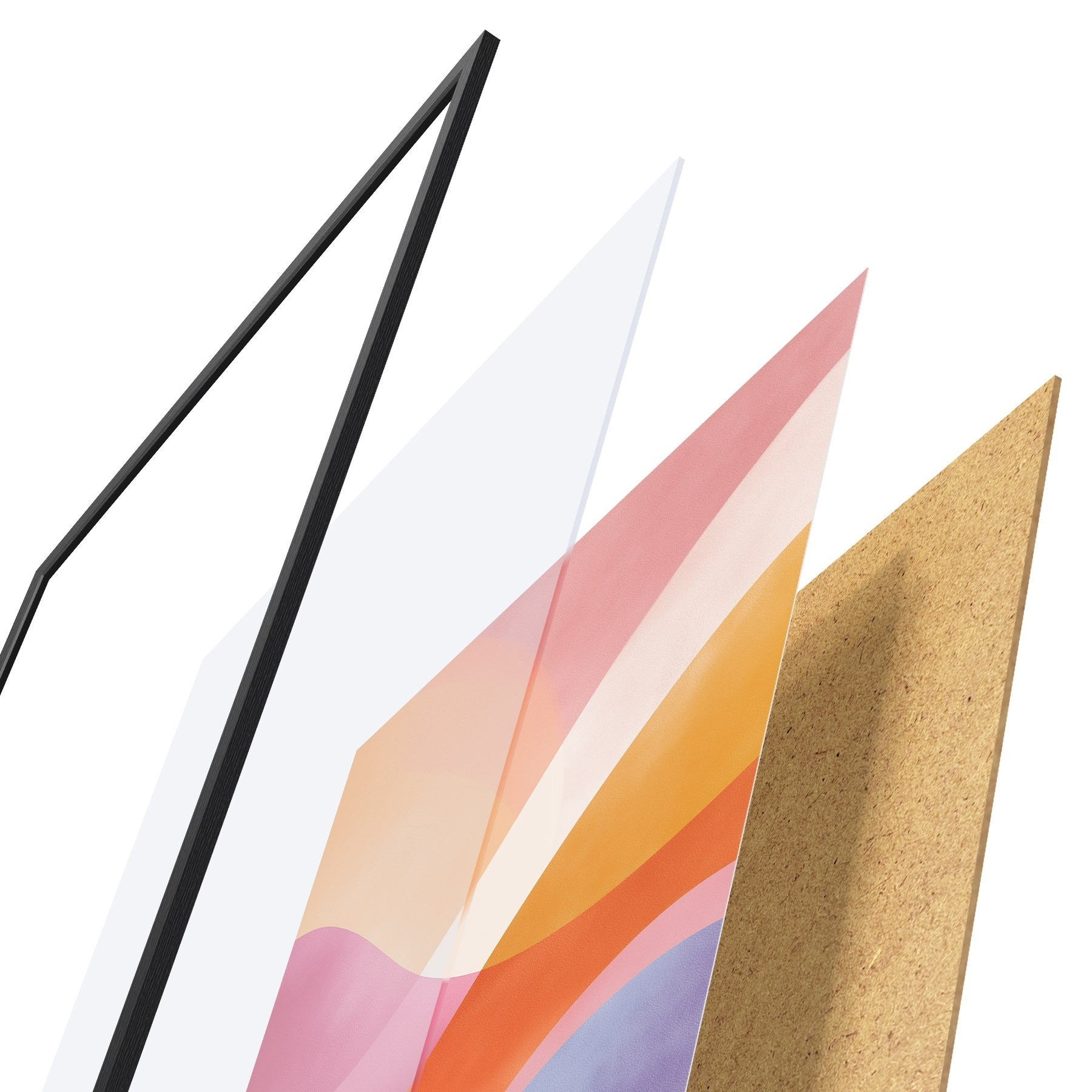 Plagát sa skladá z rámu, plexiskla, vytlačeného obrazu a podkladu z drevotriesky. Plagát možno okamžite zavesiť na stenu vďaka úchytom na zadnej strane.