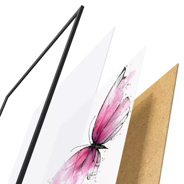 Plagát sa skladá z rámu, plexiskla, vytlačeného obrazu a podkladu z drevotriesky. Plagát možno okamžite zavesiť na stenu vďaka úchytom na zadnej strane.