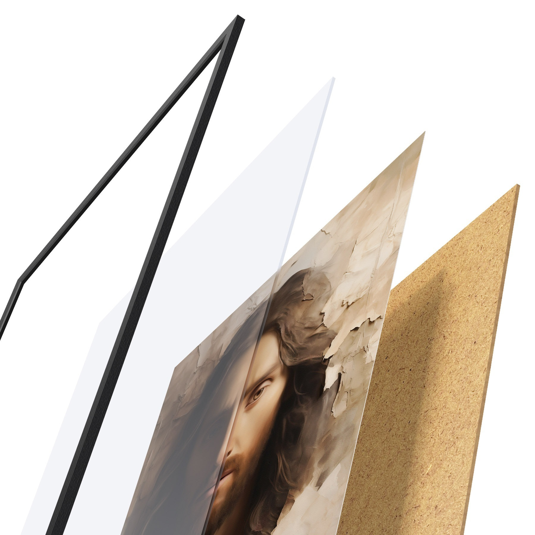Plagát sa skladá z rámu, plexiskla, vytlačeného obrazu a podkladu z drevotriesky. Plagát možno okamžite zavesiť na stenu vďaka úchytom na zadnej strane.