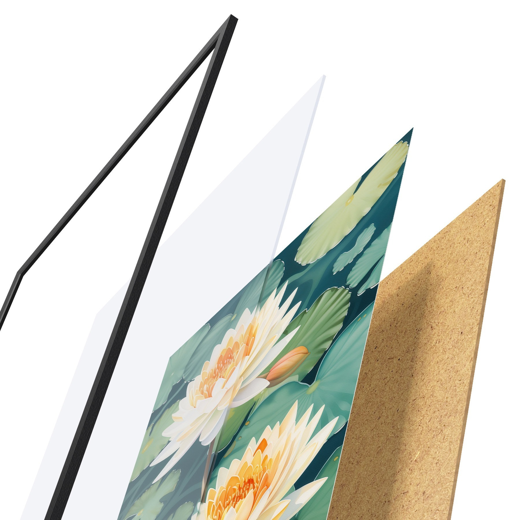 Plagát sa skladá z rámu, plexiskla, vytlačeného obrazu a podkladu z drevotriesky. Plagát možno okamžite zavesiť na stenu vďaka úchytom na zadnej strane.