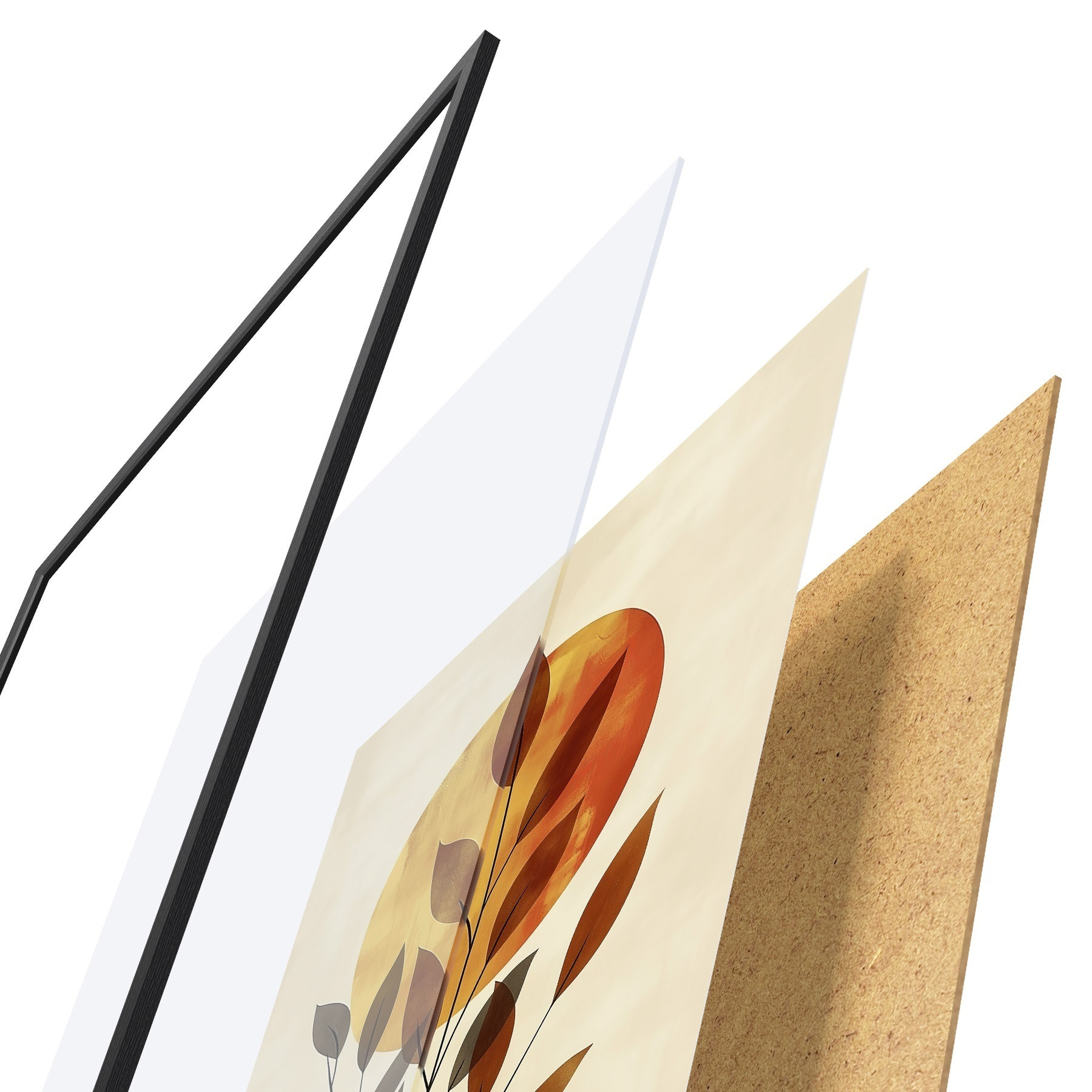 Plagát sa skladá z rámu, plexiskla, vytlačeného obrazu a podkladu z drevotriesky. Plagát možno okamžite zavesiť na stenu vďaka úchytom na zadnej strane.