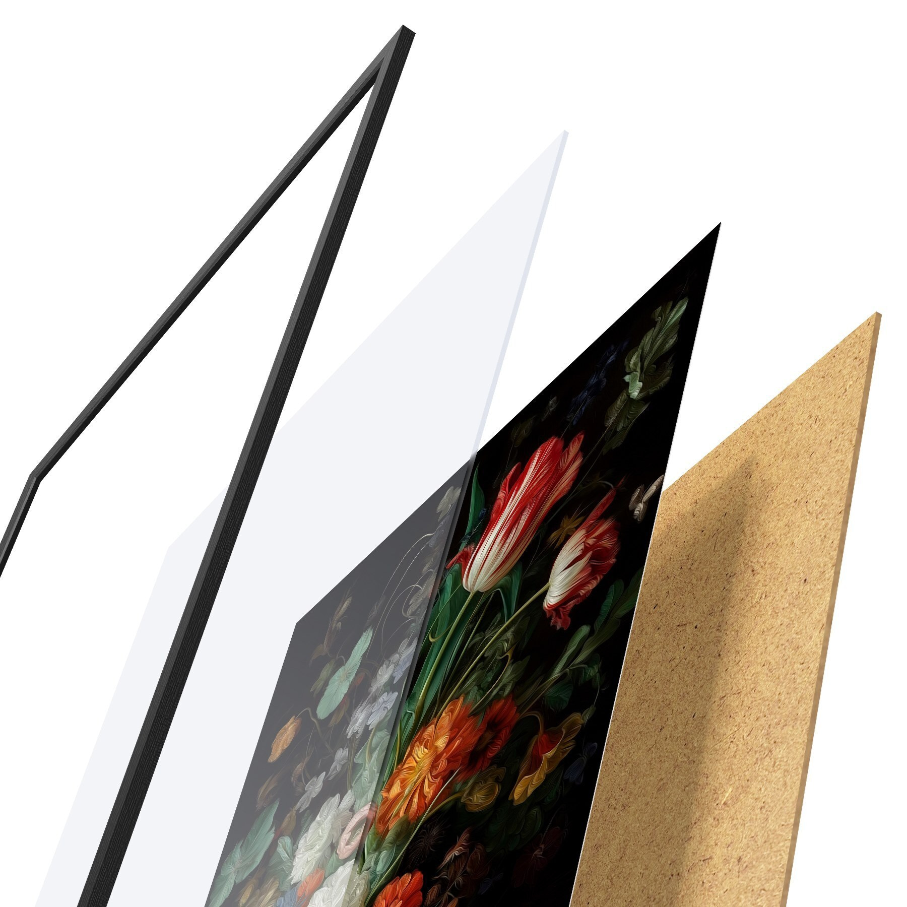 Plagát sa skladá z rámu, plexiskla, vytlačeného obrazu a podkladu z drevotriesky. Plagát možno okamžite zavesiť na stenu vďaka úchytom na zadnej strane.
