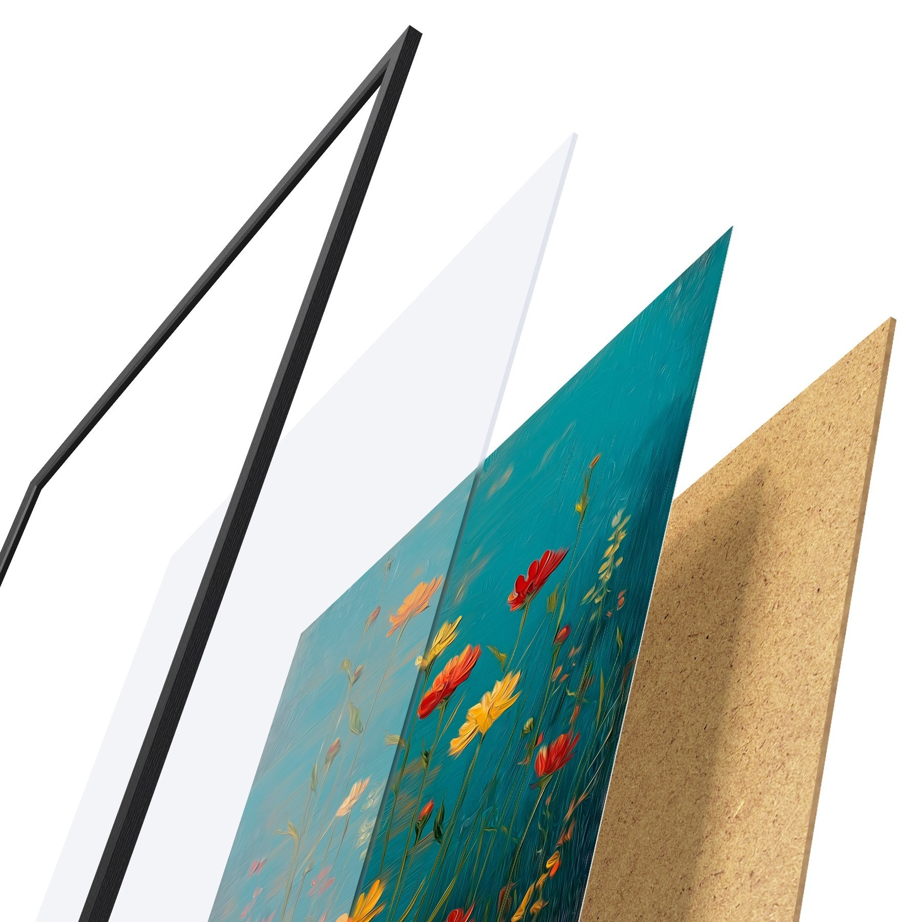 Plagát sa skladá z rámu, plexiskla, vytlačeného obrazu a podkladu z drevotriesky. Plagát možno okamžite zavesiť na stenu vďaka úchytom na zadnej strane.