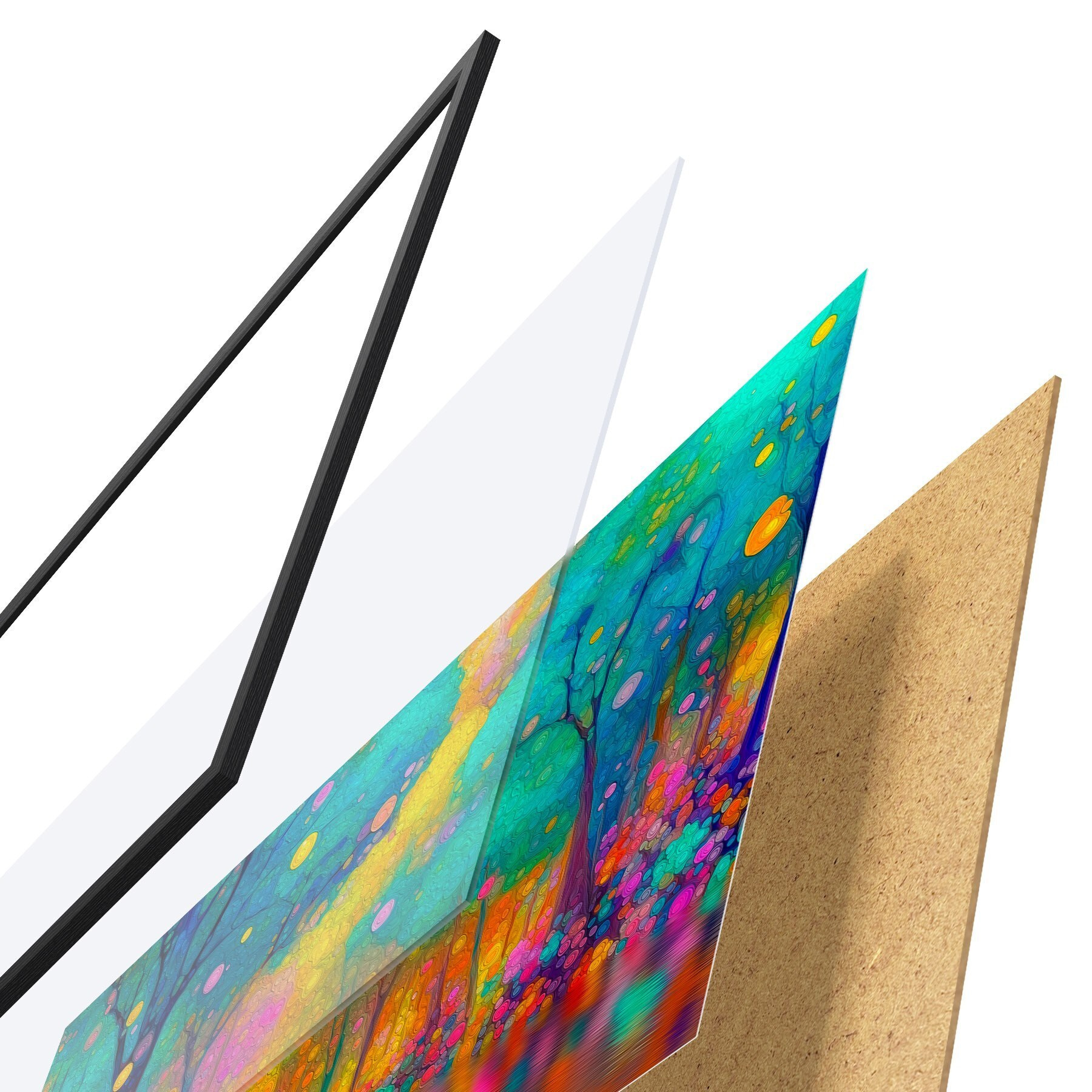 Plagát sa skladá z rámu, plexiskla, vytlačeného obrazu a podkladu z drevotriesky. Plagát možno okamžite zavesiť na stenu vďaka úchytom na zadnej strane.