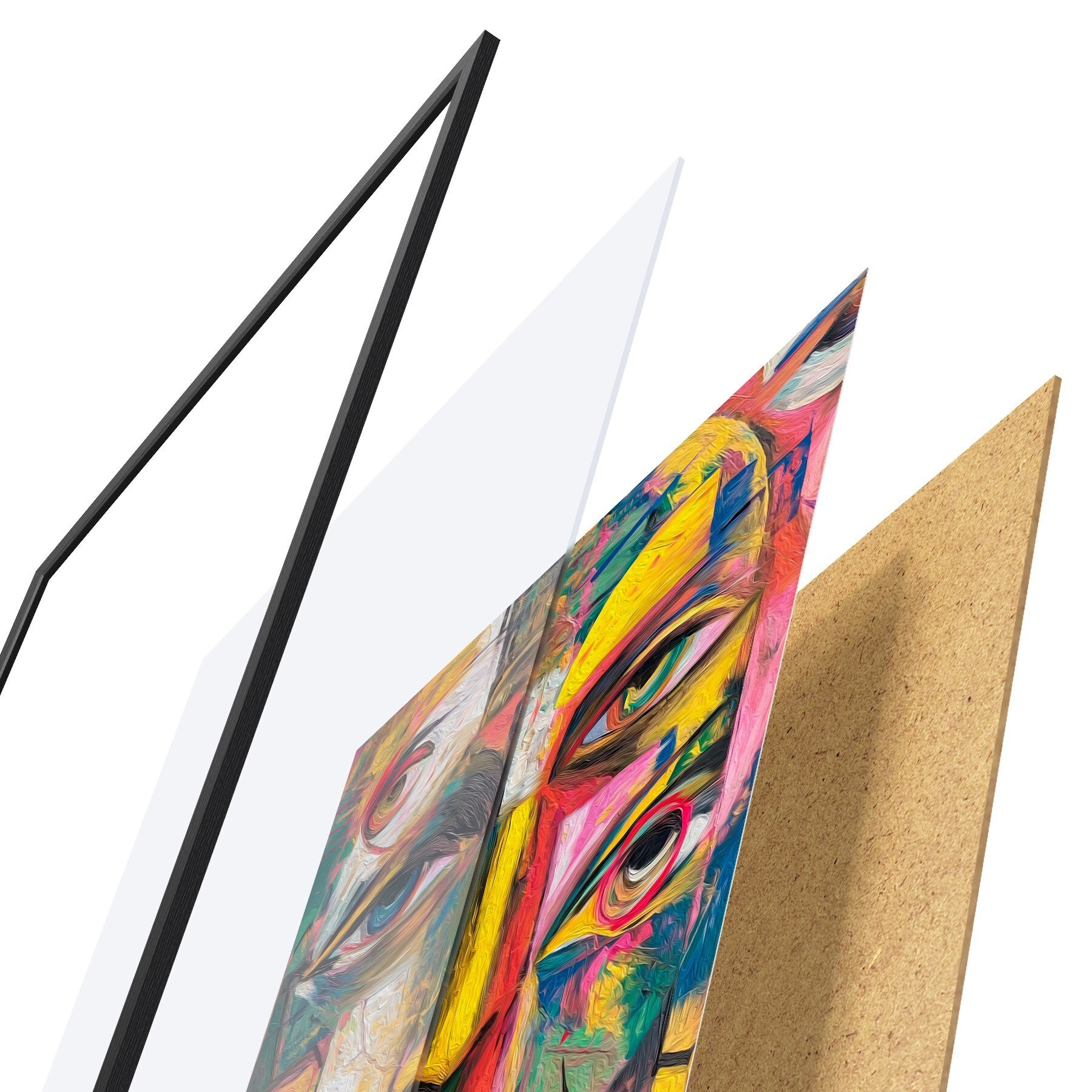 Plagát sa skladá z rámu, plexiskla, vytlačeného obrazu a podkladu z drevotriesky. Plagát možno okamžite zavesiť na stenu vďaka úchytom na zadnej strane.