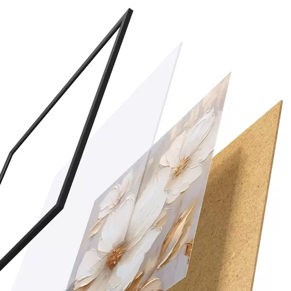 Plagát sa skladá z rámu, plexiskla, vytlačeného obrazu a podkladu z drevotriesky. Plagát možno okamžite zavesiť na stenu vďaka úchytom na zadnej strane.