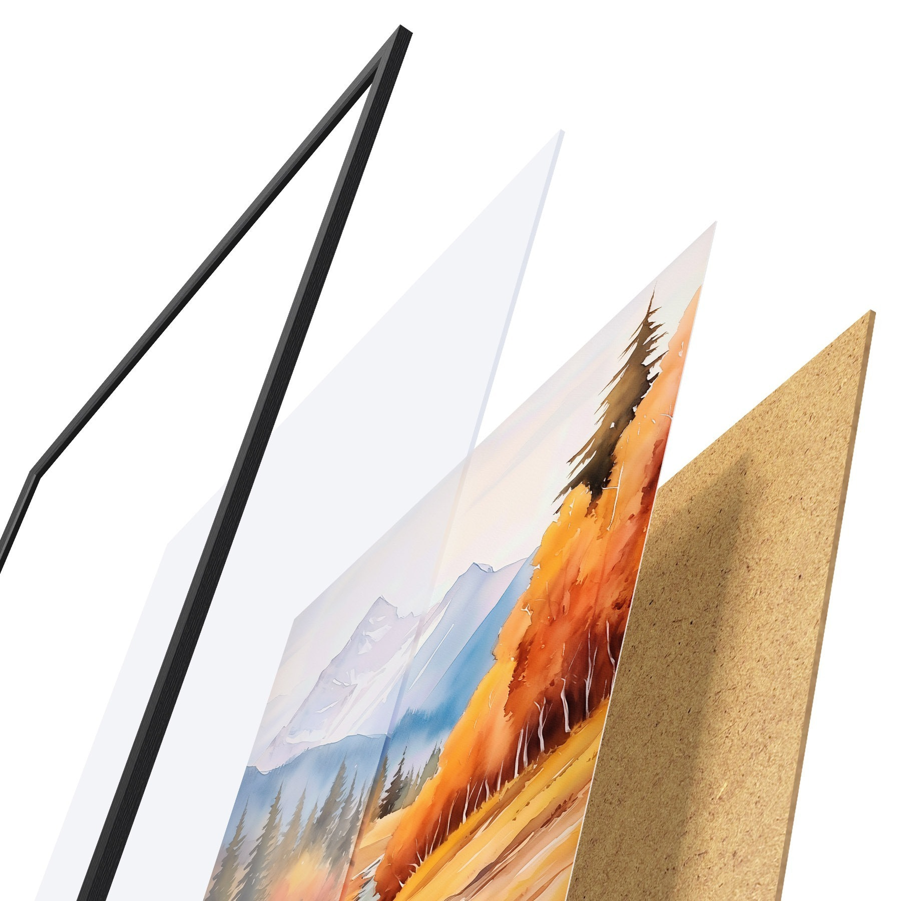 Plagát sa skladá z rámu, plexiskla, vytlačeného obrazu a podkladu z drevotriesky. Plagát možno okamžite zavesiť na stenu vďaka úchytom na zadnej strane.