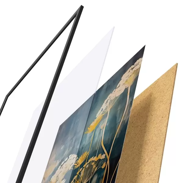 Plagát sa skladá z rámu, plexiskla, vytlačeného obrazu a podkladu z drevotriesky. Plagát možno okamžite zavesiť na stenu vďaka úchytom na zadnej strane.