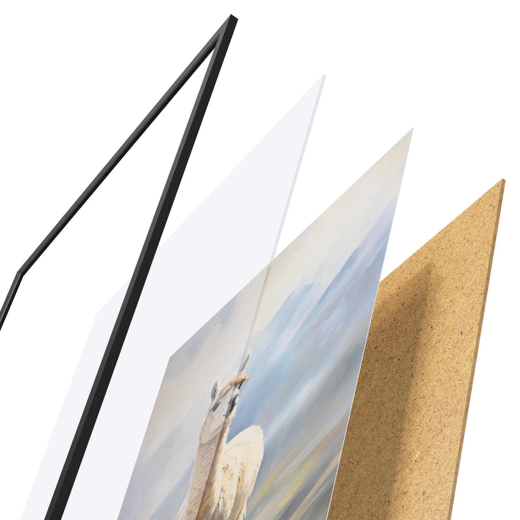 Plagát sa skladá z rámu, plexiskla, vytlačeného obrazu a podkladu z drevotriesky. Plagát možno okamžite zavesiť na stenu vďaka úchytom na zadnej strane.