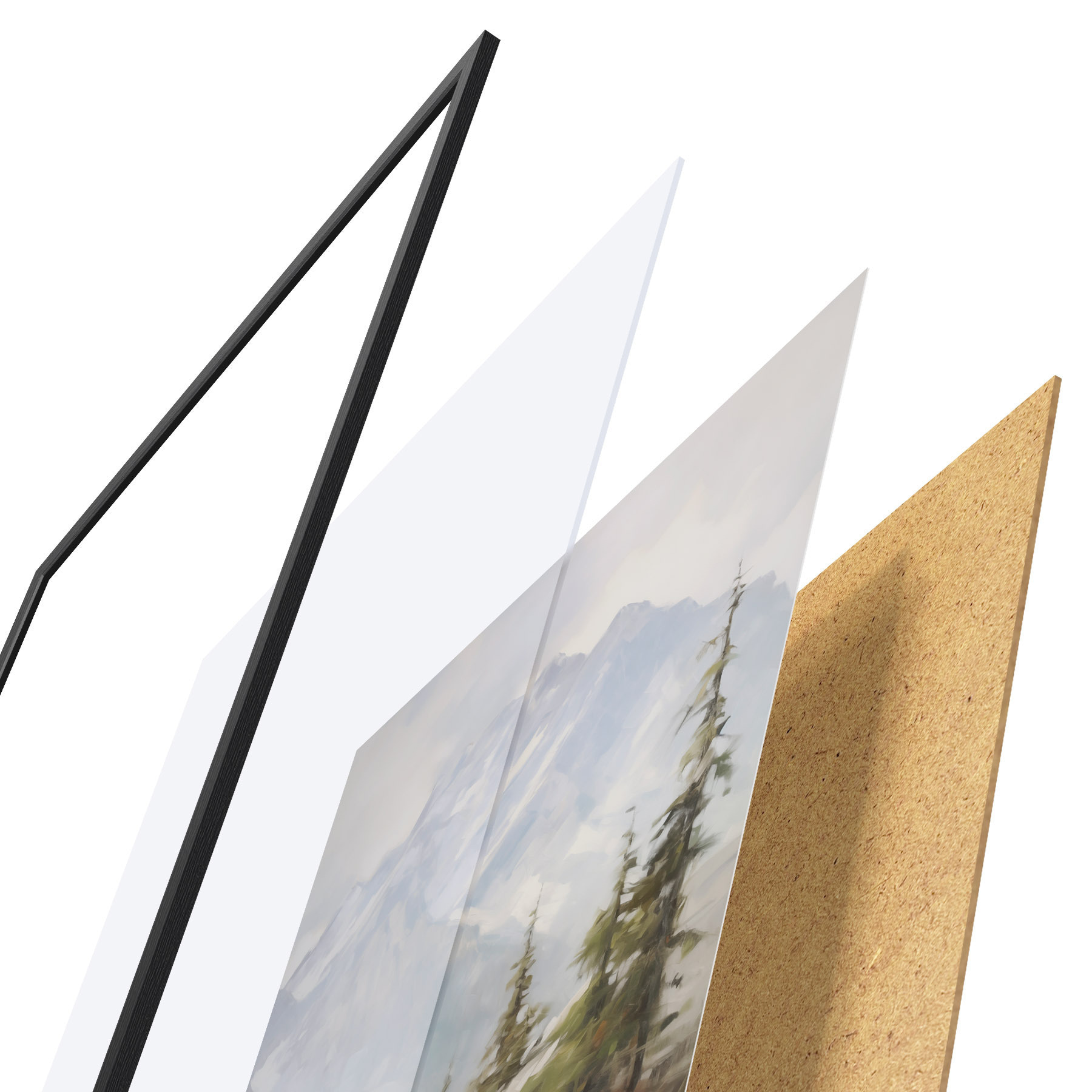 Plagát sa skladá z rámu, plexiskla, vytlačeného obrazu a podkladu z drevotriesky. Plagát možno okamžite zavesiť na stenu vďaka úchytom na zadnej strane.