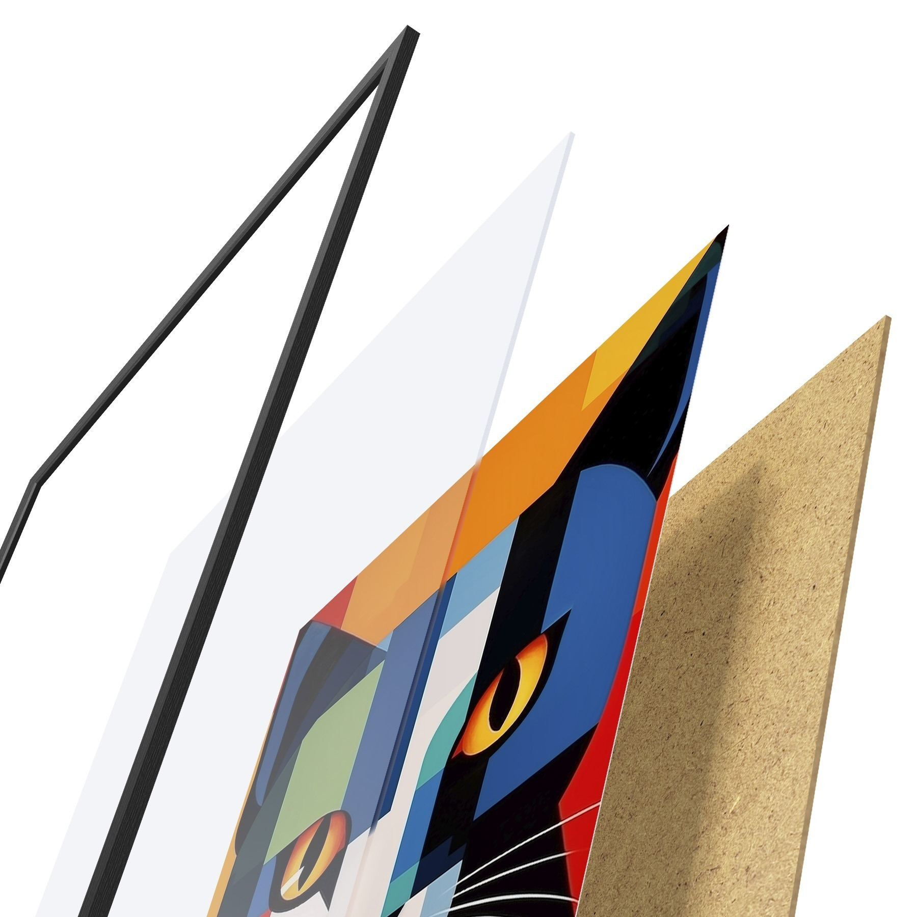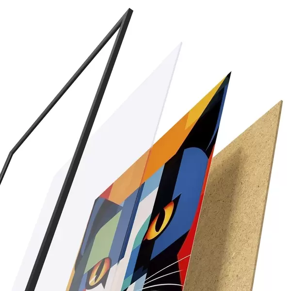 Plagát sa skladá z rámu, plexiskla, vytlačeného obrazu a podkladu z drevotriesky. Plagát možno okamžite zavesiť na stenu vďaka úchytom na zadnej strane.
