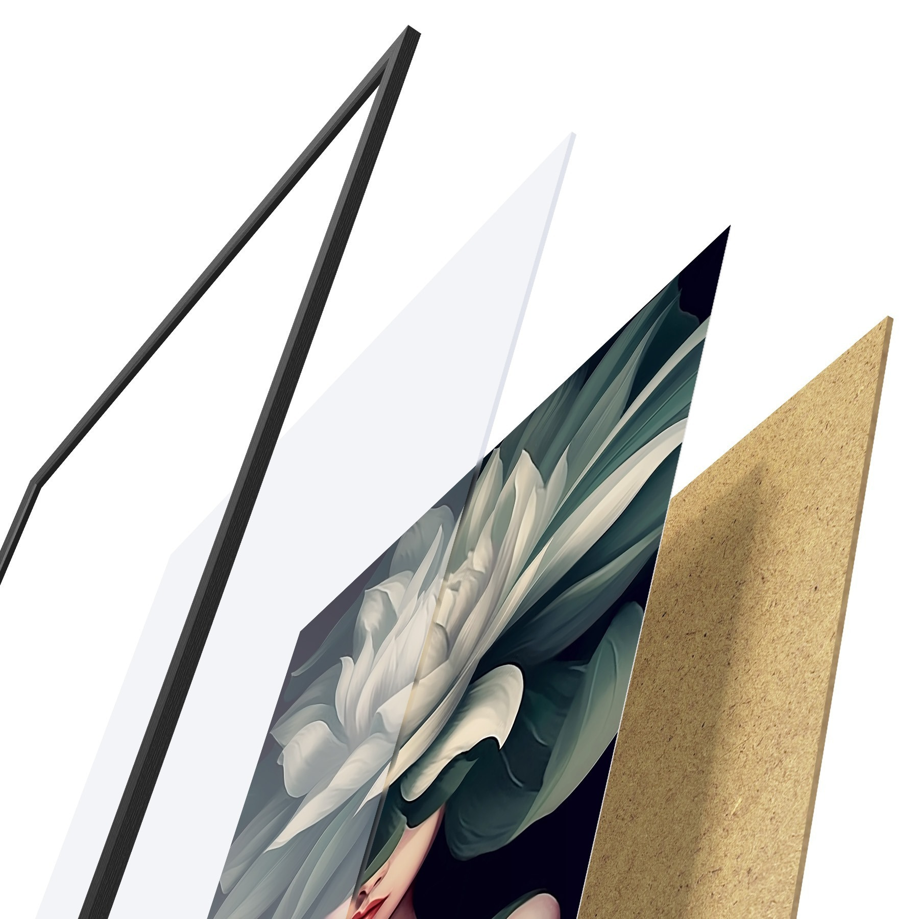 Plagát sa skladá z rámu, plexiskla, vytlačeného obrazu a podkladu z drevotriesky. Plagát možno okamžite zavesiť na stenu vďaka úchytom na zadnej strane.