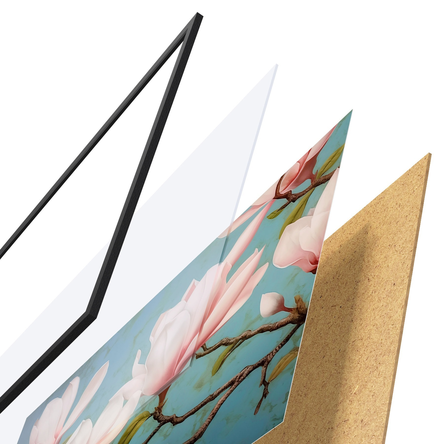 Plagát sa skladá z rámu, plexiskla, vytlačeného obrazu a podkladu z drevotriesky. Plagát možno okamžite zavesiť na stenu vďaka úchytom na zadnej strane.