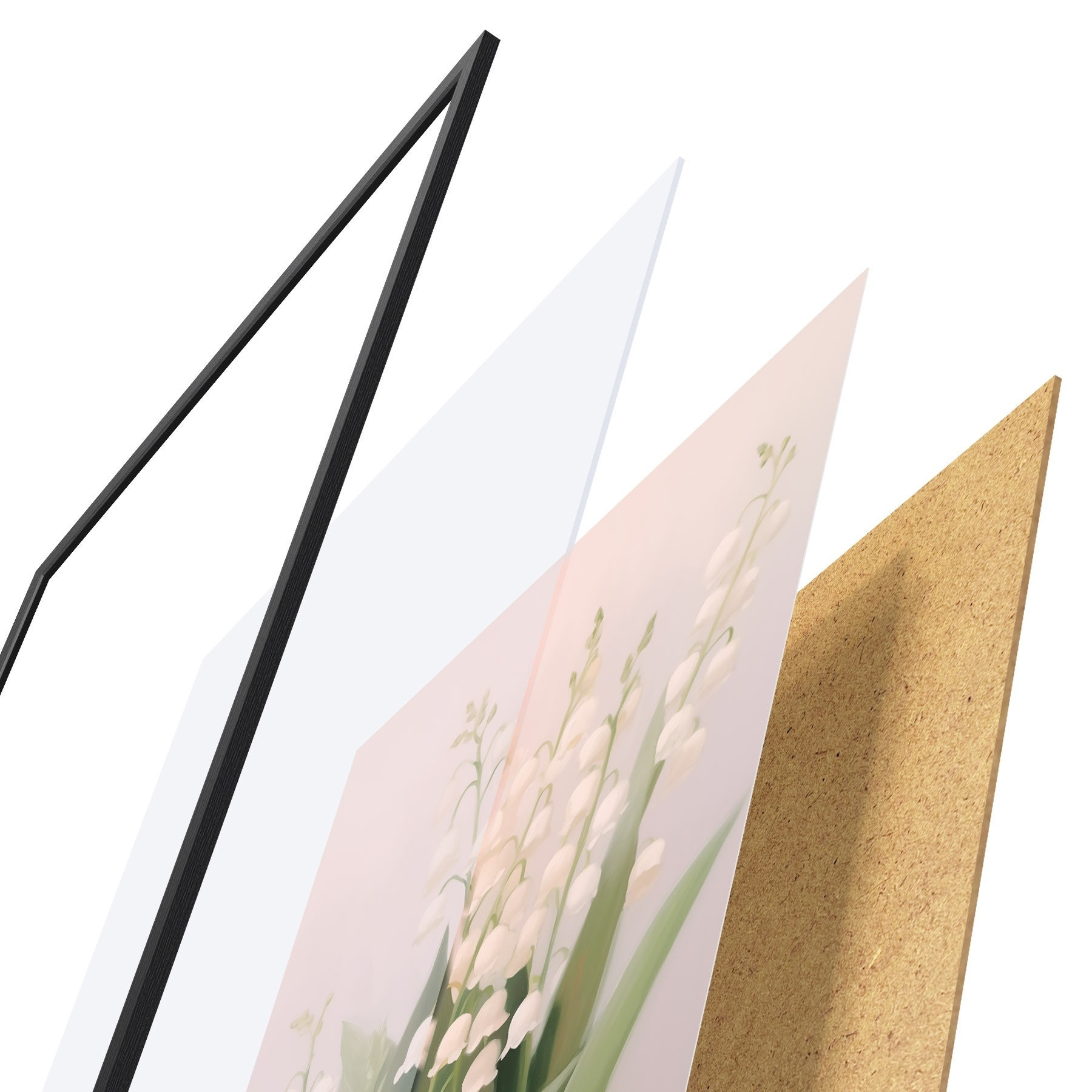 Plagát sa skladá z rámu, plexiskla, vytlačeného obrazu a podkladu z drevotriesky. Plagát možno okamžite zavesiť na stenu vďaka úchytom na zadnej strane.