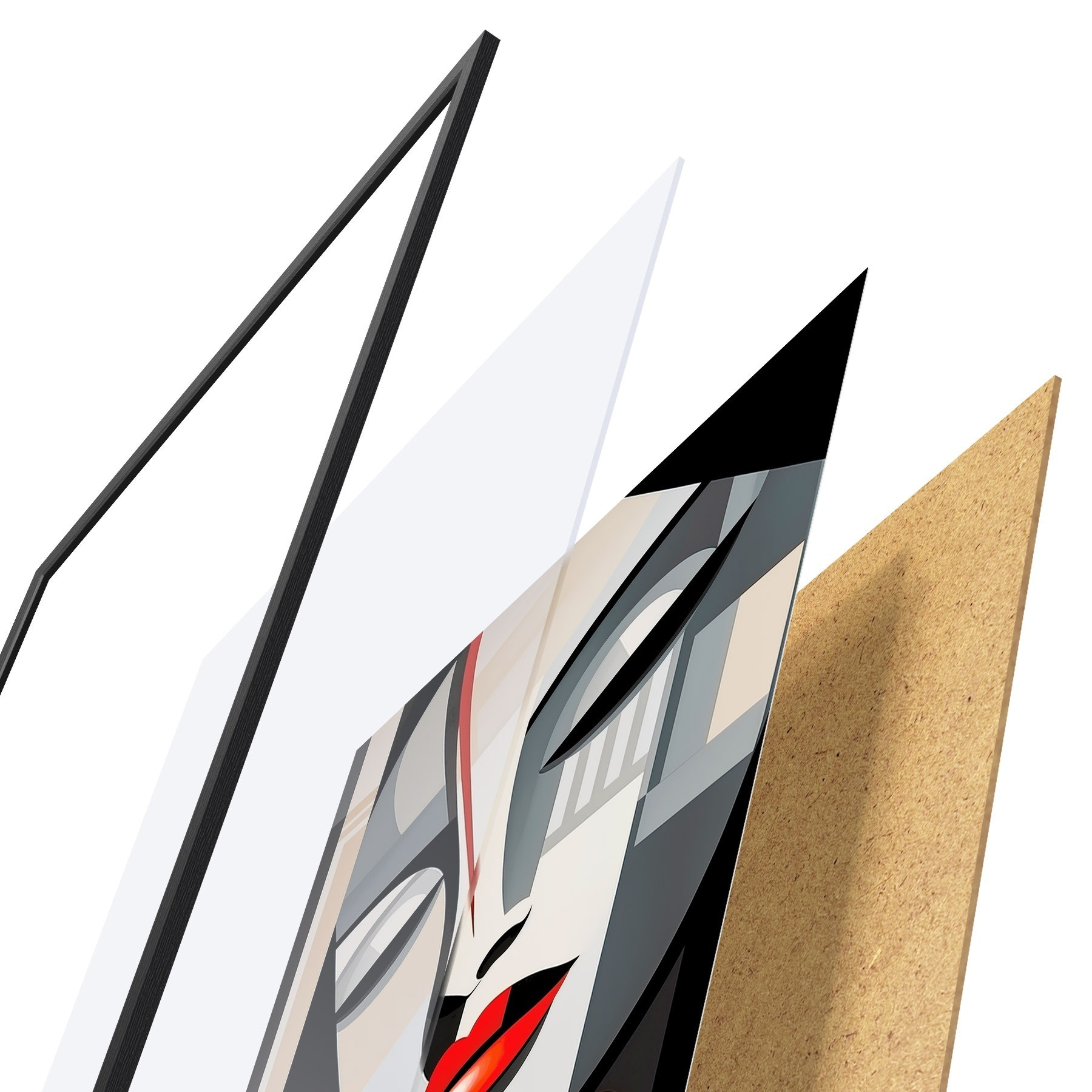 Plagát sa skladá z rámu, plexiskla, vytlačeného obrazu a podkladu z drevotriesky. Plagát možno okamžite zavesiť na stenu vďaka úchytom na zadnej strane.