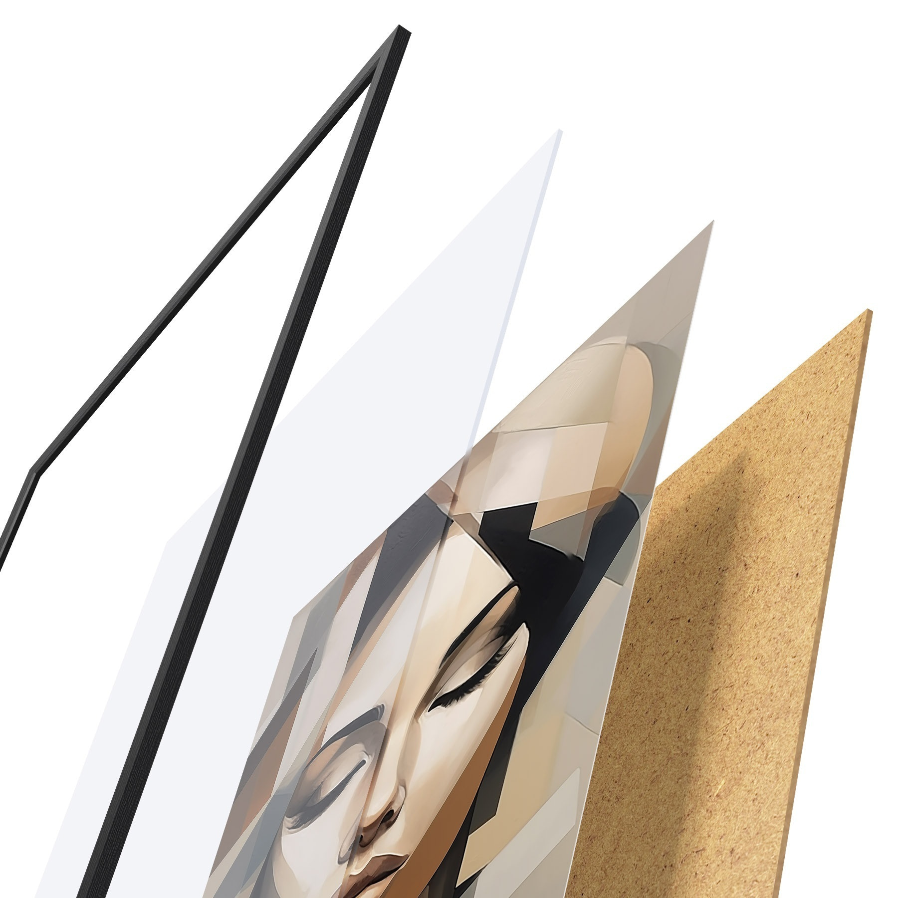 Plagát sa skladá z rámu, plexiskla, vytlačeného obrazu a podkladu z drevotriesky. Plagát možno okamžite zavesiť na stenu vďaka úchytom na zadnej strane.