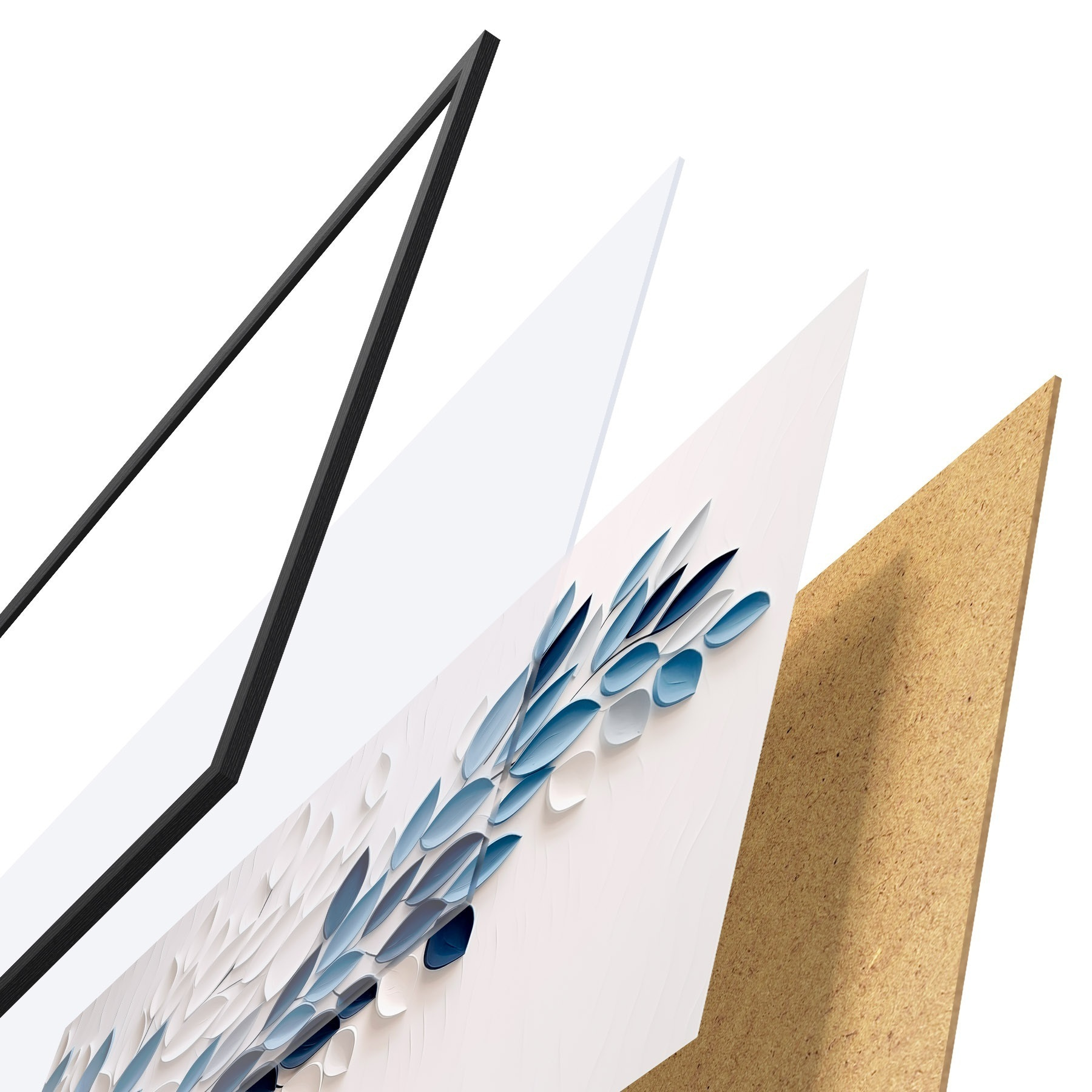 Plagát sa skladá z rámu, plexiskla, vytlačeného obrazu a podkladu z drevotriesky. Plagát možno okamžite zavesiť na stenu vďaka úchytom na zadnej strane.