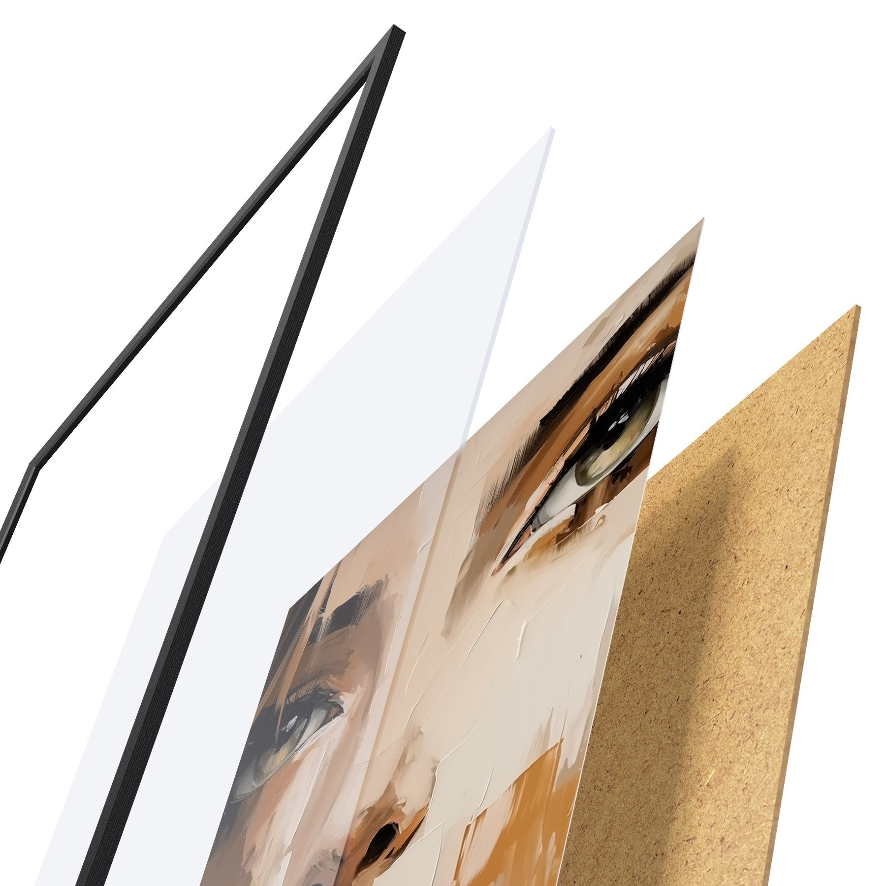 Plagát sa skladá z rámu, plexiskla, vytlačeného obrazu a podkladu z drevotriesky. Plagát možno okamžite zavesiť na stenu vďaka úchytom na zadnej strane.