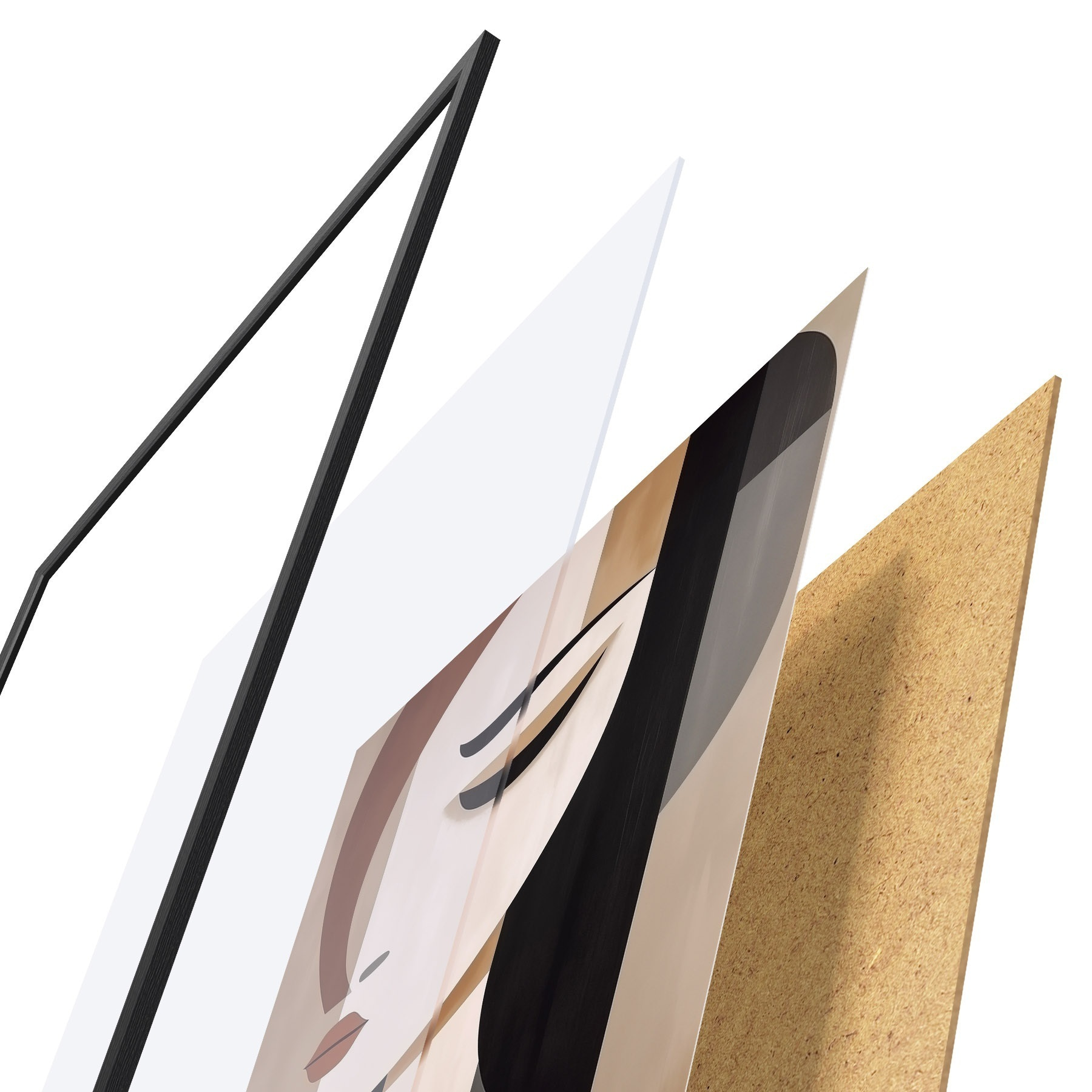 Plagát sa skladá z rámu, plexiskla, vytlačeného obrazu a podkladu z drevotriesky. Plagát možno okamžite zavesiť na stenu vďaka úchytom na zadnej strane.