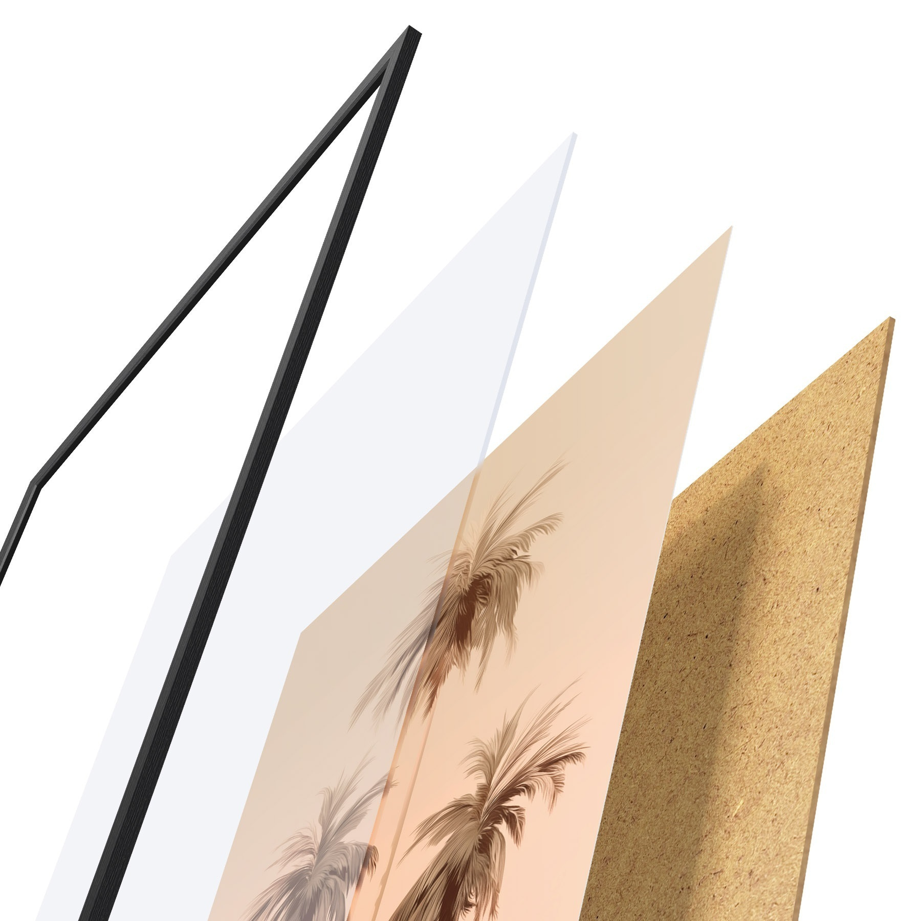 Plagát sa skladá z rámu, plexiskla, vytlačeného obrazu a podkladu z drevotriesky. Plagát možno okamžite zavesiť na stenu vďaka úchytom na zadnej strane.