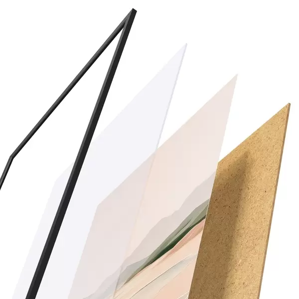 Plagát sa skladá z rámu, plexiskla, vytlačeného obrazu a podkladu z drevotriesky. Plagát možno okamžite zavesiť na stenu vďaka úchytom na zadnej strane.