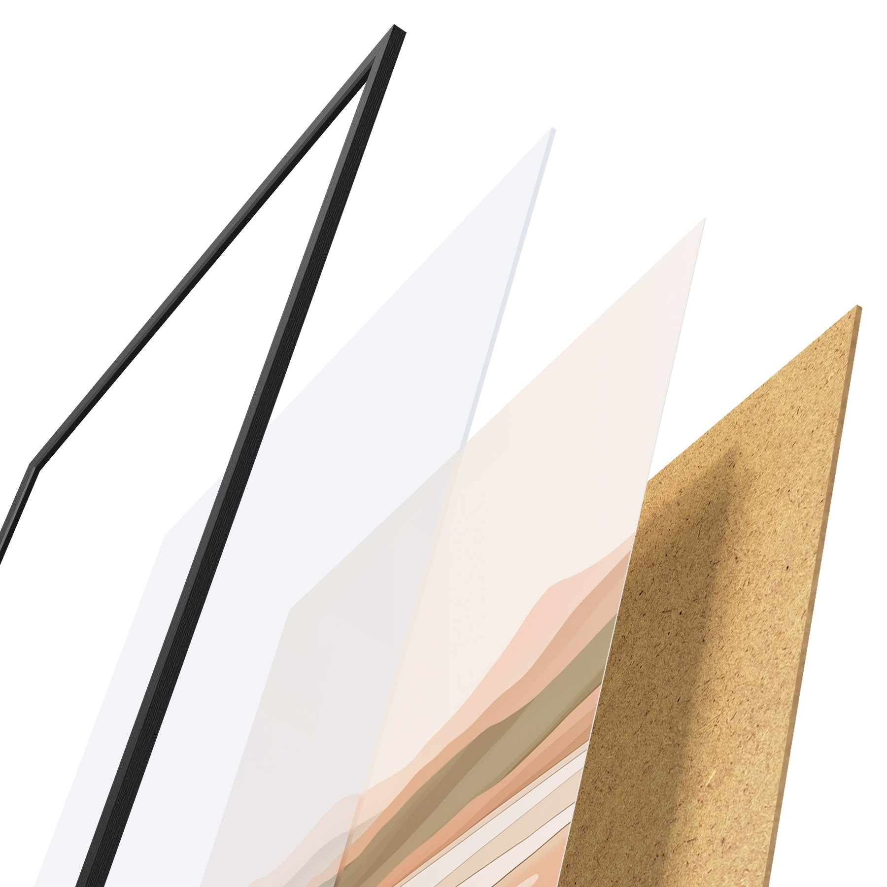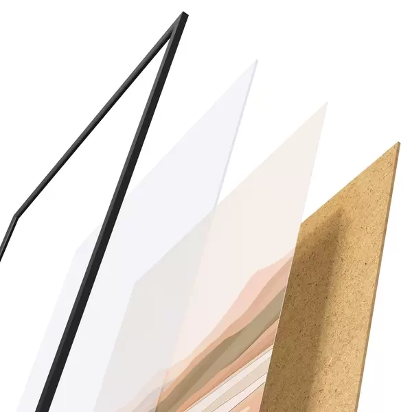 Plagát sa skladá z rámu, plexiskla, vytlačeného obrazu a podkladu z drevotriesky. Plagát možno okamžite zavesiť na stenu vďaka úchytom na zadnej strane.