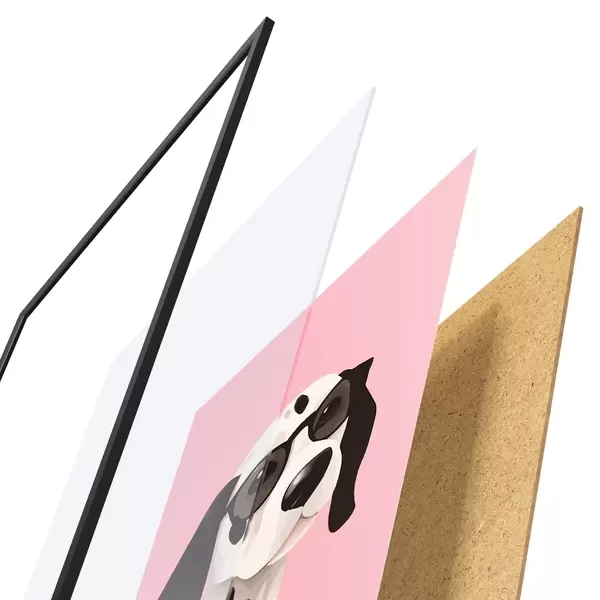 Plagát sa skladá z rámu, plexiskla, vytlačeného obrazu a podkladu z drevotriesky. Plagát možno okamžite zavesiť na stenu vďaka úchytom na zadnej strane.