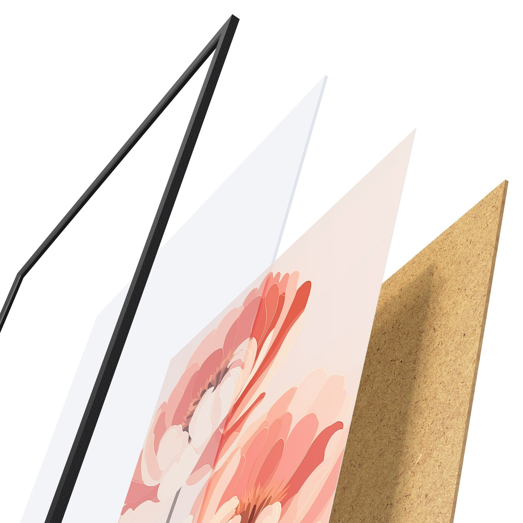 Plagát sa skladá z rámu, plexiskla, vytlačeného obrazu a podkladu z drevotriesky. Plagát možno okamžite zavesiť na stenu vďaka úchytom na zadnej strane.