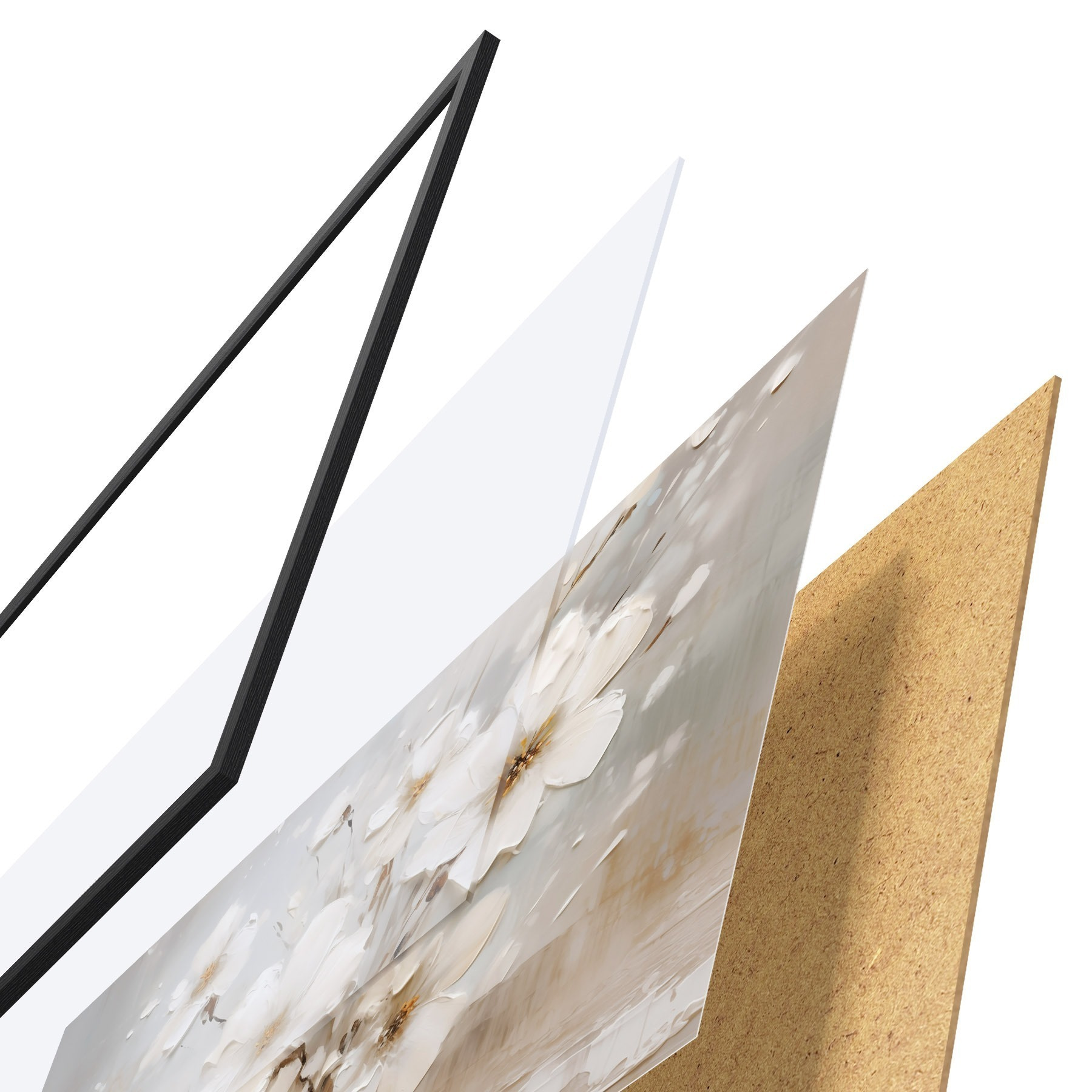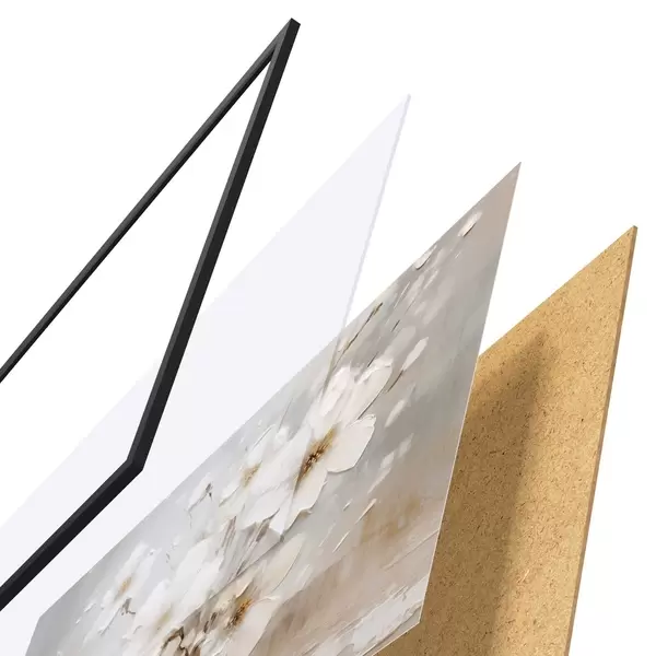 Plagát sa skladá z rámu, plexiskla, vytlačeného obrazu a podkladu z drevotriesky. Plagát možno okamžite zavesiť na stenu vďaka úchytom na zadnej strane.