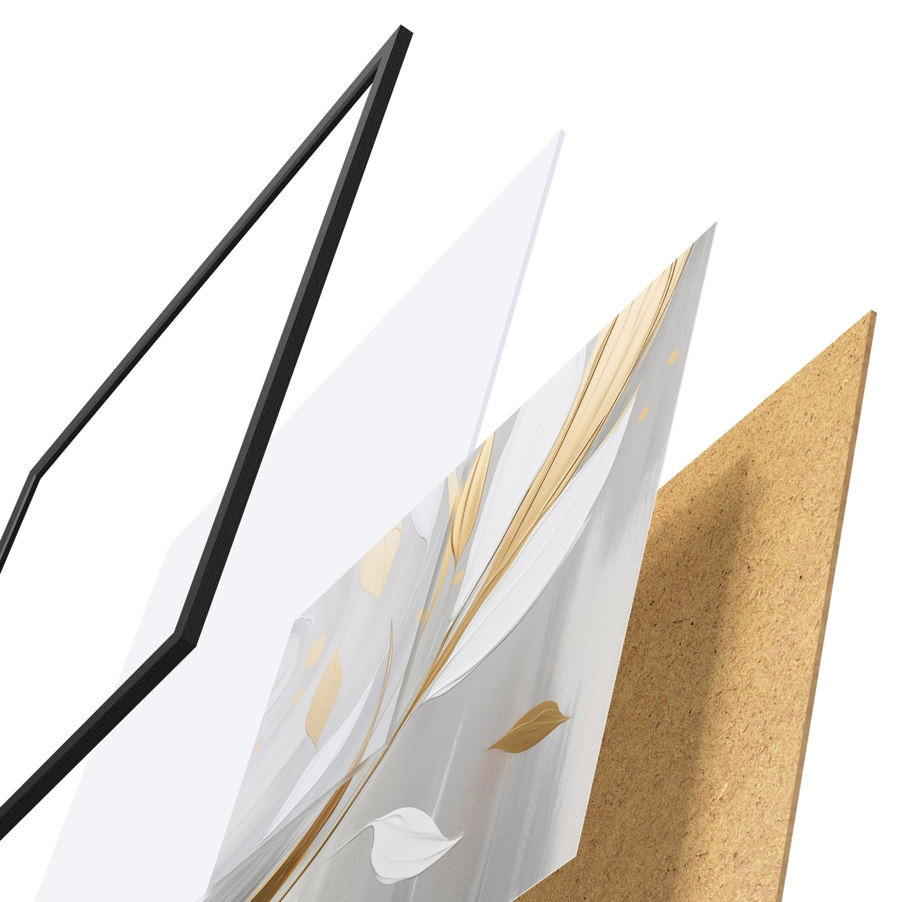 Plagát sa skladá z rámu, plexiskla, vytlačeného obrazu a podkladu z drevotriesky. Plagát možno okamžite zavesiť na stenu vďaka úchytom na zadnej strane.
