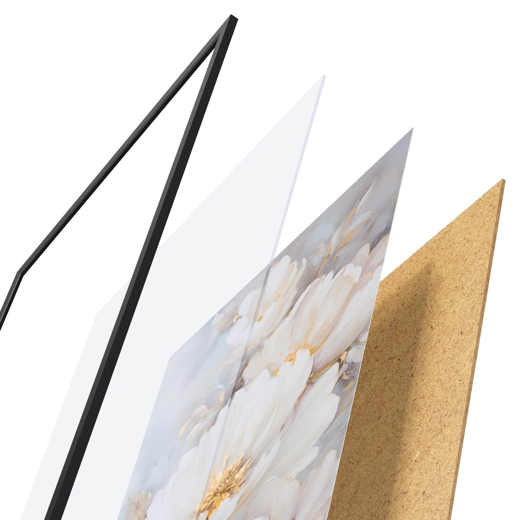 Plagát sa skladá z rámu, plexiskla, vytlačeného obrazu a podkladu z drevotriesky. Plagát možno okamžite zavesiť na stenu vďaka úchytom na zadnej strane.