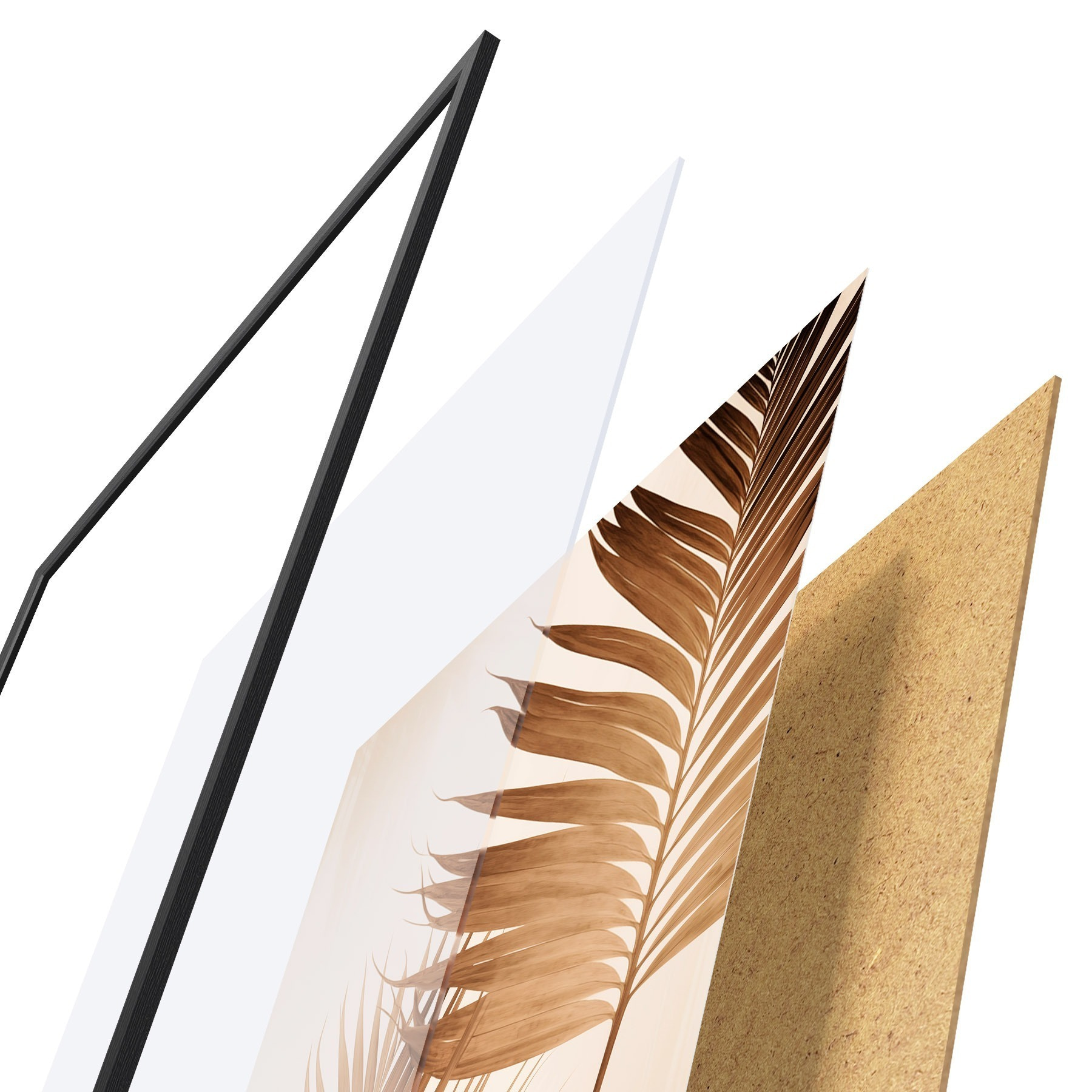 Plagát sa skladá z rámu, plexiskla, vytlačeného obrazu a podkladu z drevotriesky. Plagát možno okamžite zavesiť na stenu vďaka úchytom na zadnej strane.