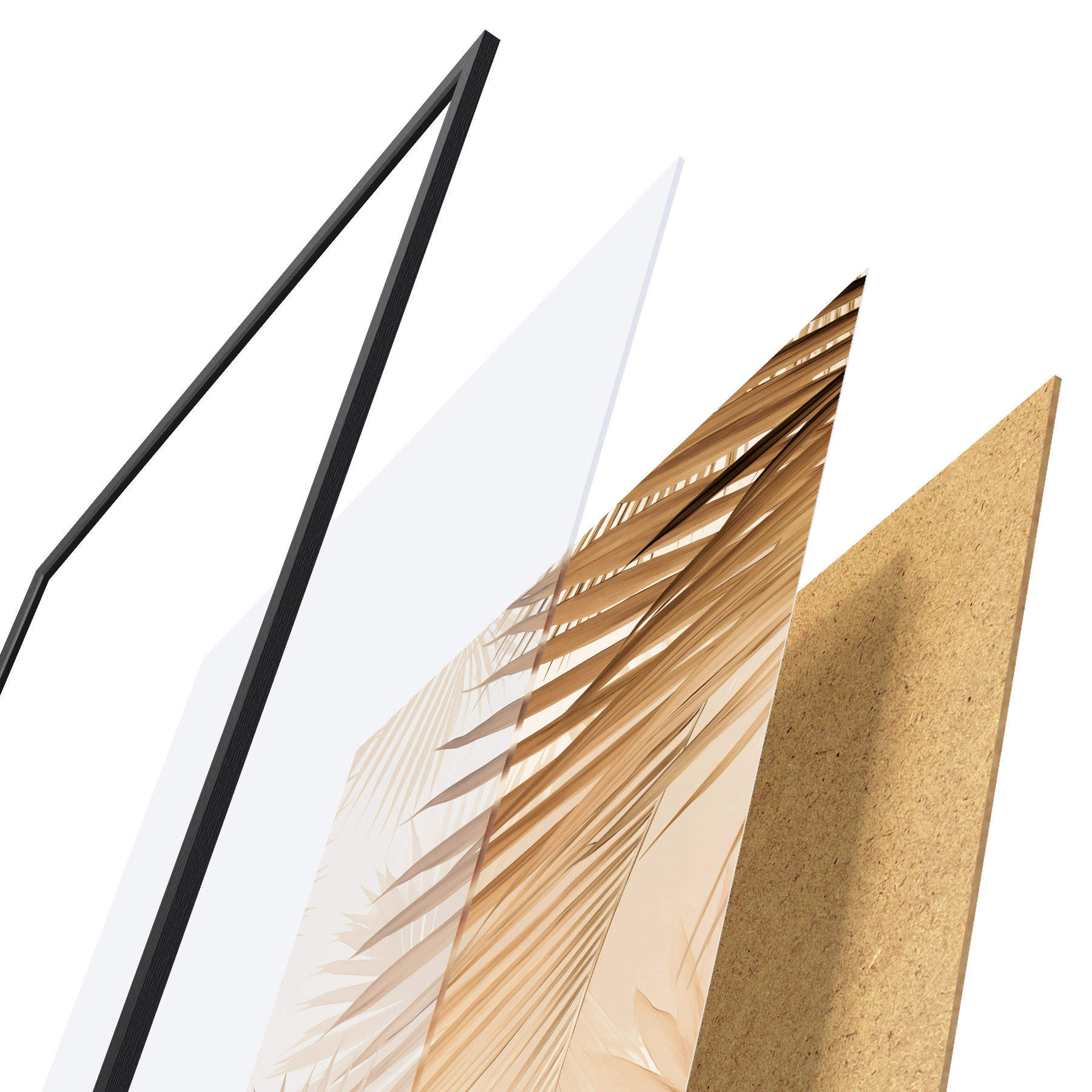 Plagát sa skladá z rámu, plexiskla, vytlačeného obrazu a podkladu z drevotriesky. Plagát možno okamžite zavesiť na stenu vďaka úchytom na zadnej strane.