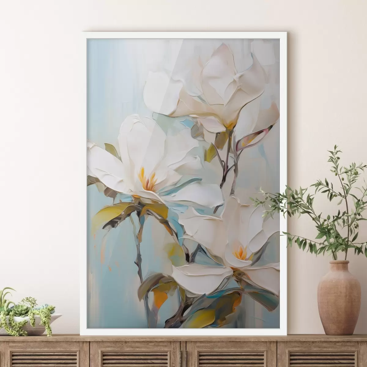 Plagát sa skladá z rámu, plexiskla, vytlačeného obrazu a podkladu z drevotriesky. Plagát možno okamžite zavesiť na stenu vďaka úchytom na zadnej strane.