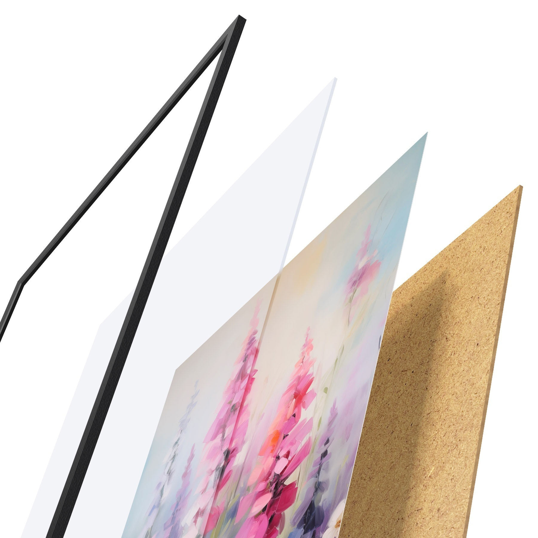 Plagát sa skladá z rámu, plexiskla, vytlačeného obrazu a podkladu z drevotriesky. Plagát možno okamžite zavesiť na stenu vďaka úchytom na zadnej strane.