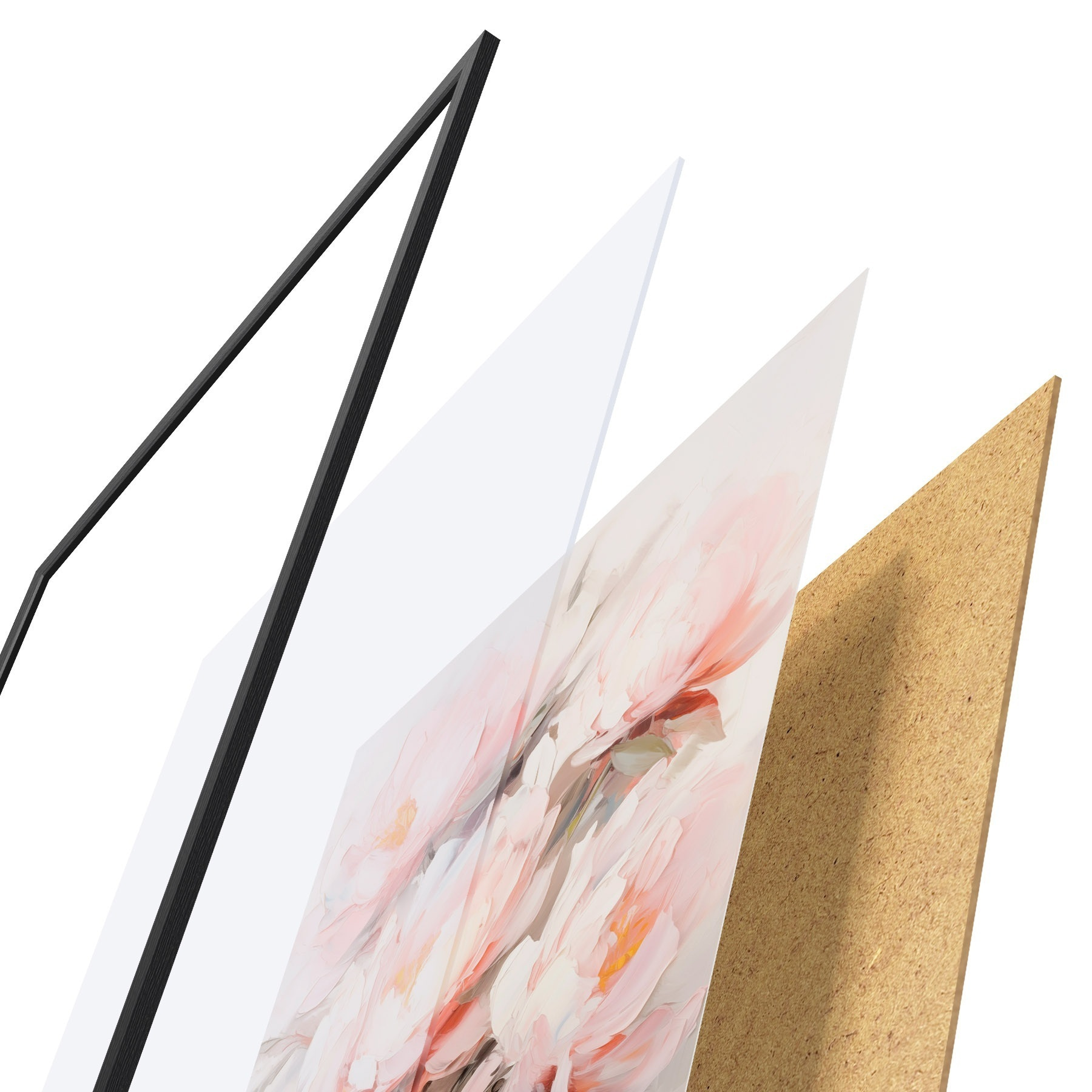 Plagát sa skladá z rámu, plexiskla, vytlačeného obrazu a podkladu z drevotriesky. Plagát možno okamžite zavesiť na stenu vďaka úchytom na zadnej strane.