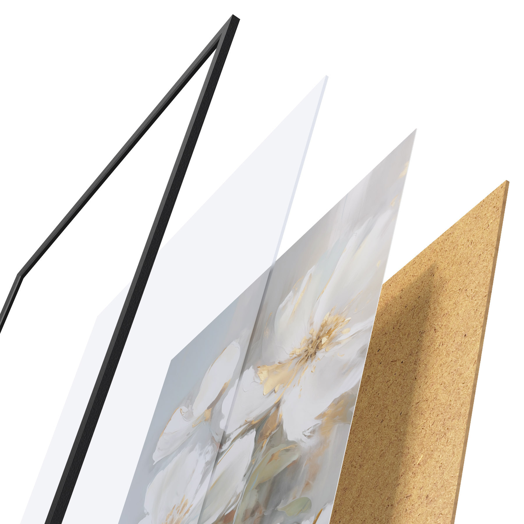 Plagát sa skladá z rámu, plexiskla, vytlačeného obrazu a podkladu z drevotriesky. Plagát možno okamžite zavesiť na stenu vďaka úchytom na zadnej strane.