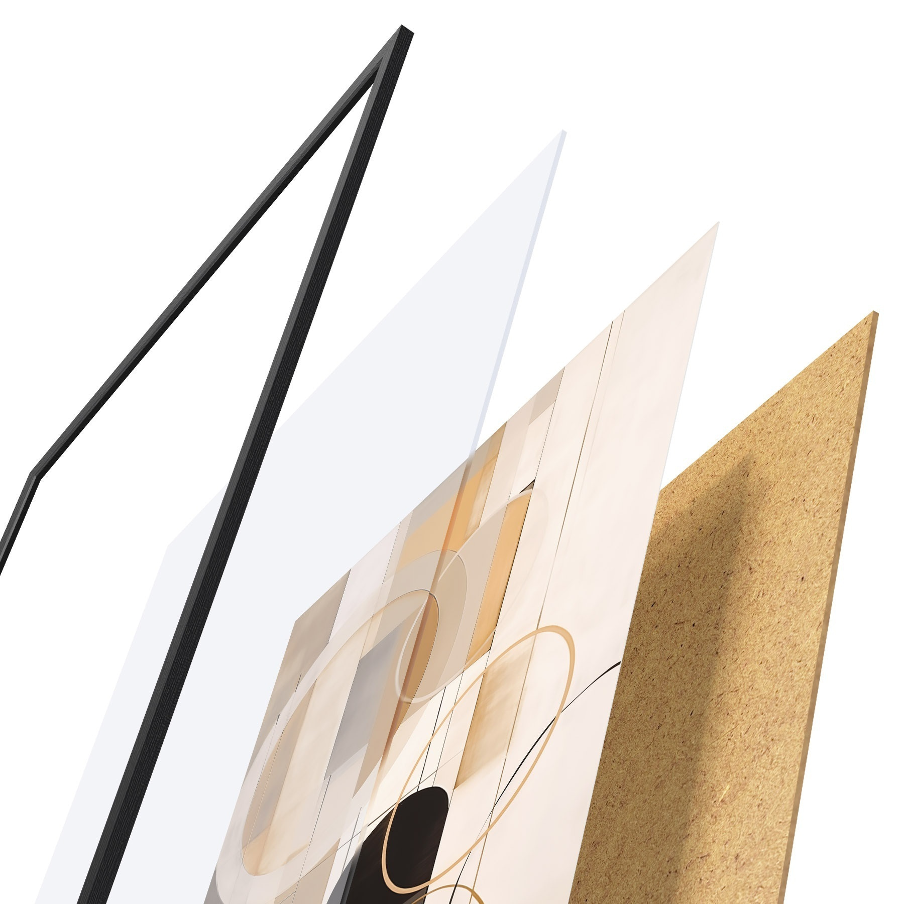 Plagát sa skladá z rámu, plexiskla, vytlačeného obrazu a podkladu z drevotriesky. Plagát možno okamžite zavesiť na stenu vďaka úchytom na zadnej strane.