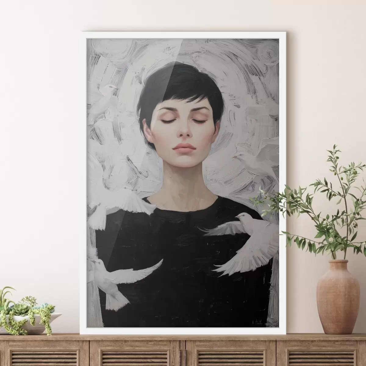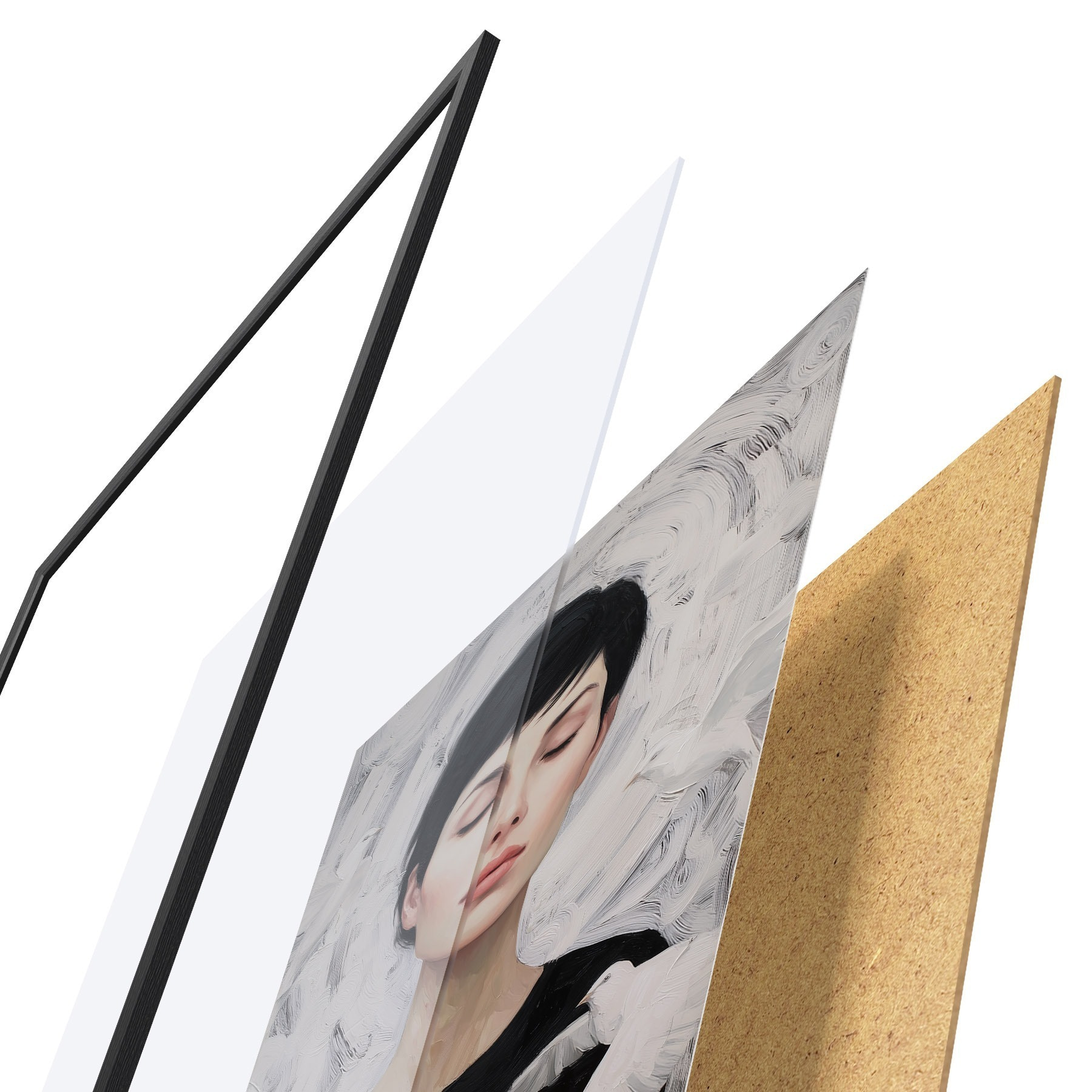 Plagát sa skladá z rámu, plexiskla, vytlačeného obrazu a podkladu z drevotriesky. Plagát možno okamžite zavesiť na stenu vďaka úchytom na zadnej strane.