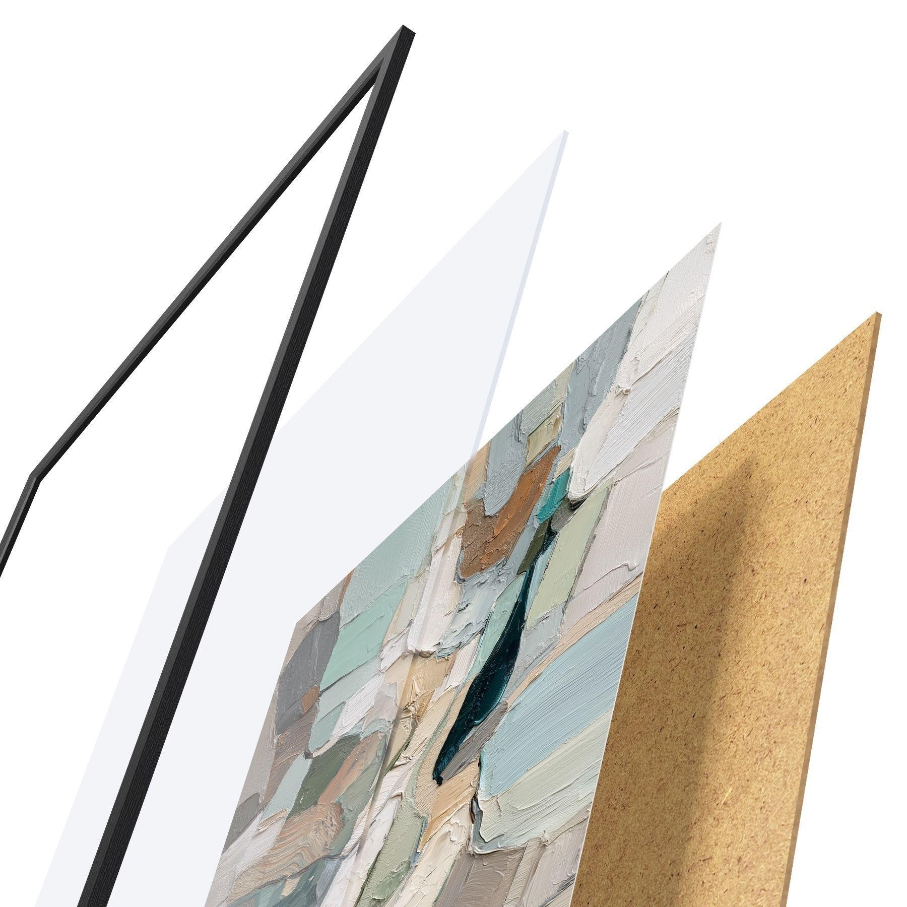 Plagát sa skladá z rámu, plexiskla, vytlačeného obrazu a podkladu z drevotriesky. Plagát možno okamžite zavesiť na stenu vďaka úchytom na zadnej strane.