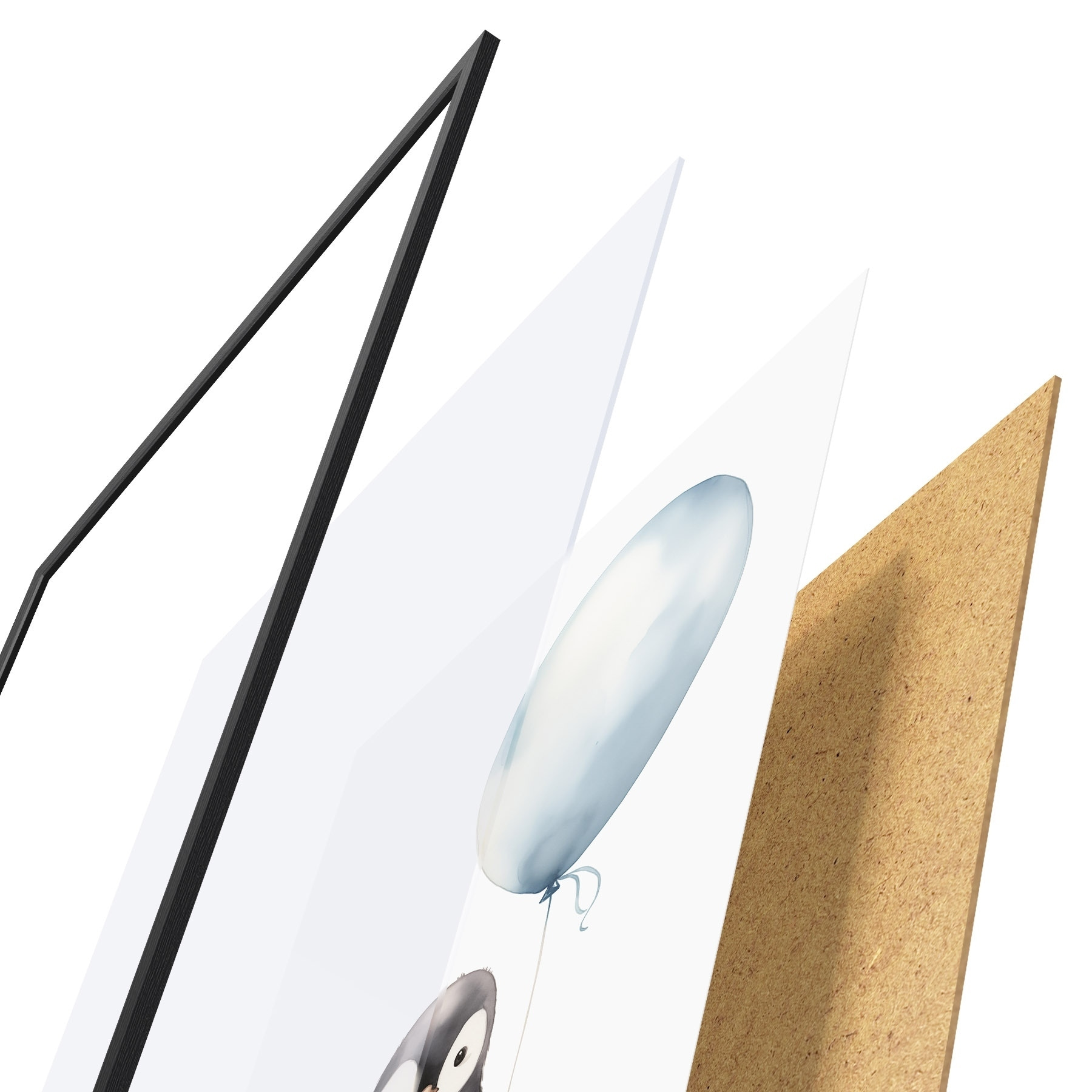 Plagát sa skladá z rámu, plexiskla, vytlačeného obrazu a podkladu z drevotriesky. Plagát možno okamžite zavesiť na stenu vďaka úchytom na zadnej strane.