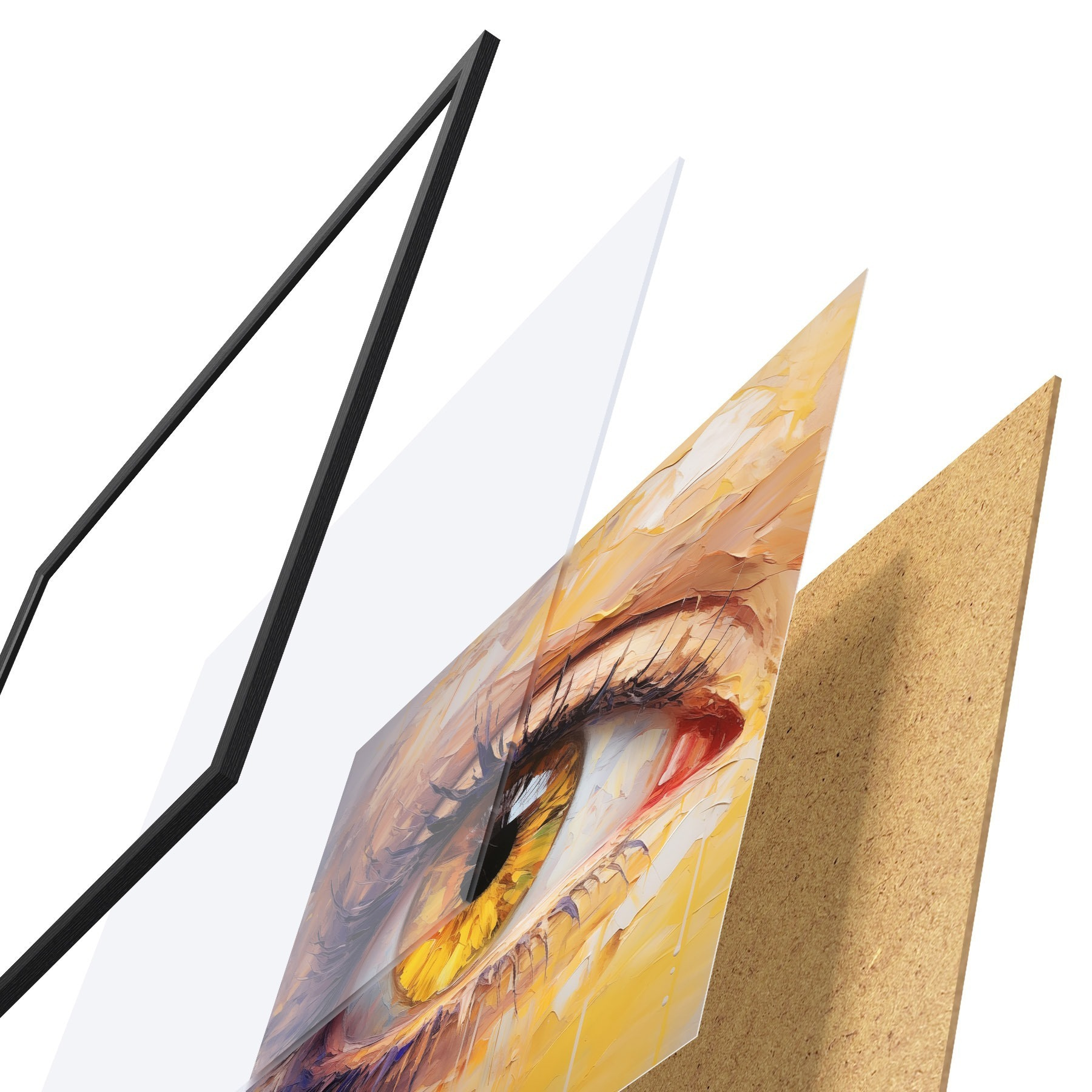 Plagát sa skladá z rámu, plexiskla, vytlačeného obrazu a podkladu z drevotriesky. Plagát možno okamžite zavesiť na stenu vďaka úchytom na zadnej strane.