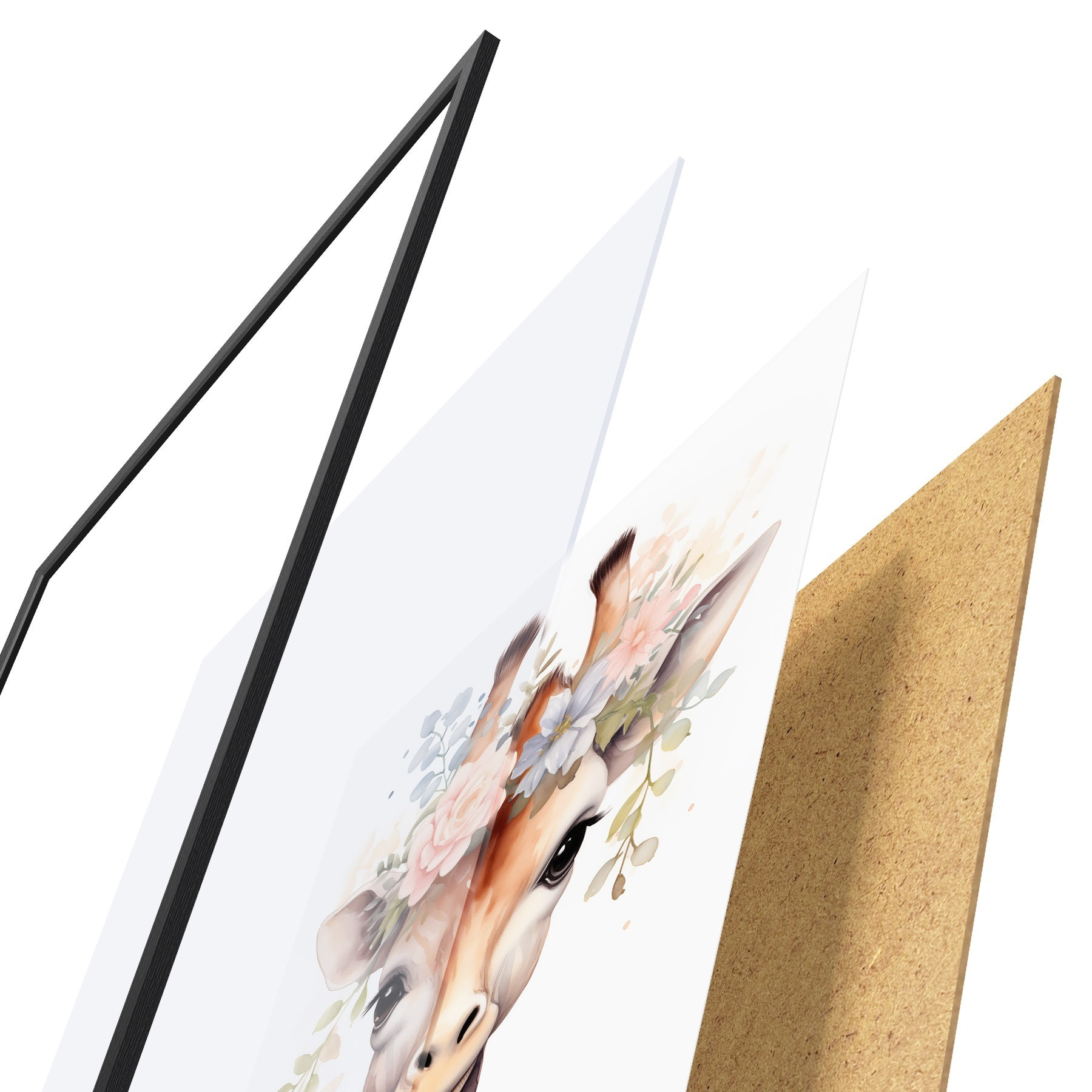 Plagát sa skladá z rámu, plexiskla, vytlačeného obrazu a podkladu z drevotriesky. Plagát možno okamžite zavesiť na stenu vďaka úchytom na zadnej strane.