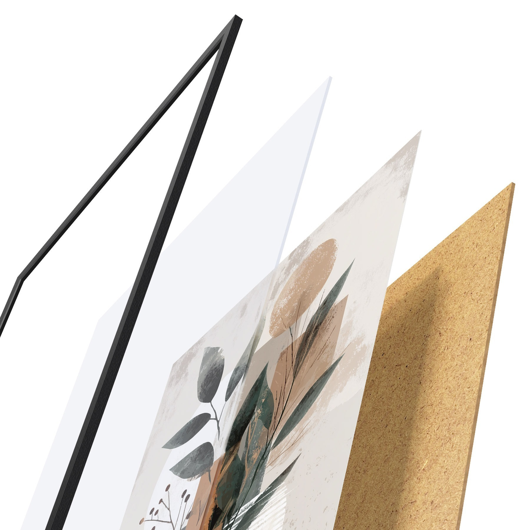 Plagát sa skladá z rámu, plexiskla, vytlačeného obrazu a podkladu z drevotriesky. Plagát možno okamžite zavesiť na stenu vďaka úchytom na zadnej strane.