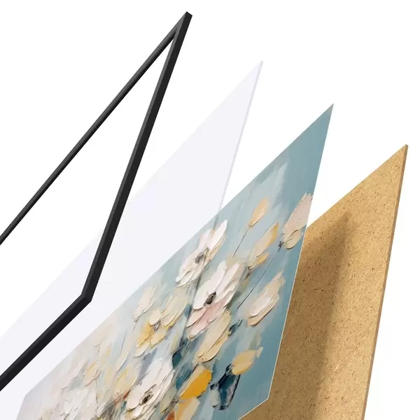 Plagát sa skladá z rámu, plexiskla, vytlačeného obrazu a podkladu z drevotriesky. Plagát možno okamžite zavesiť na stenu vďaka úchytom na zadnej strane.