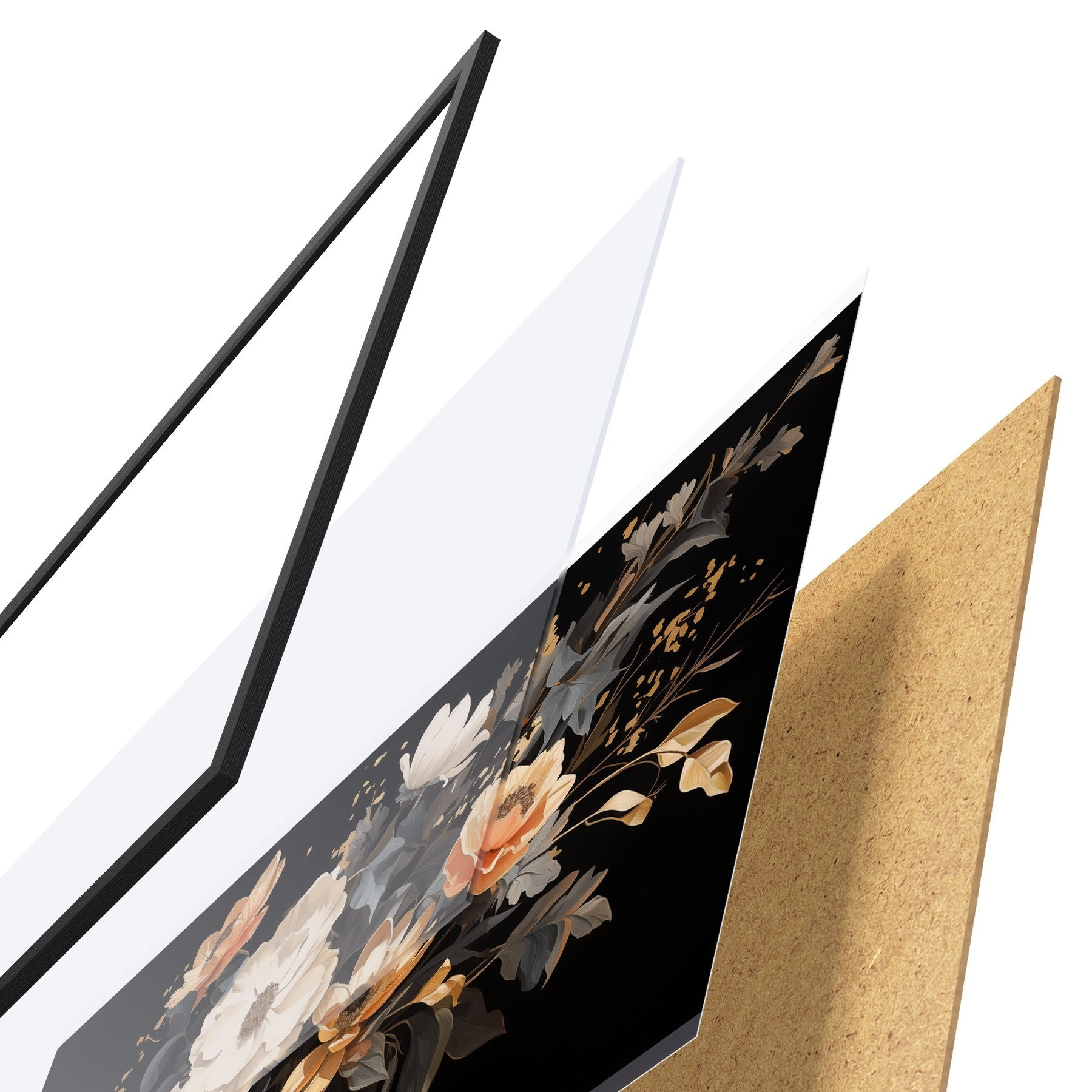 Plagát sa skladá z rámu, plexiskla, vytlačeného obrazu a podkladu z drevotriesky. Plagát možno okamžite zavesiť na stenu vďaka úchytom na zadnej strane.