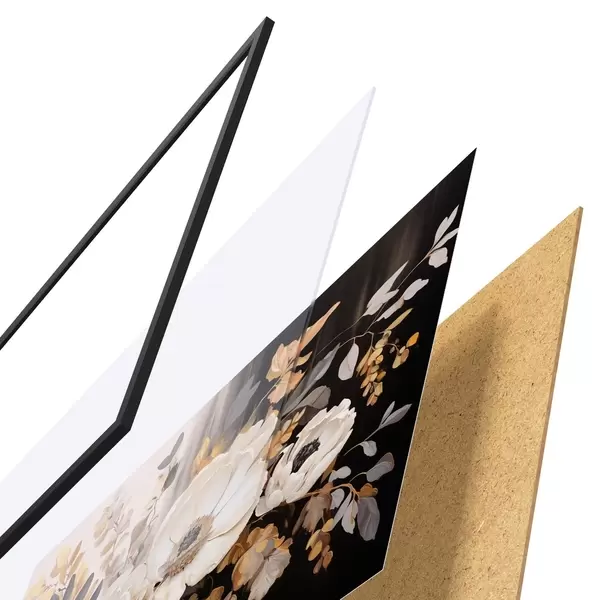 Plagát sa skladá z rámu, plexiskla, vytlačeného obrazu a podkladu z drevotriesky. Plagát možno okamžite zavesiť na stenu vďaka úchytom na zadnej strane.