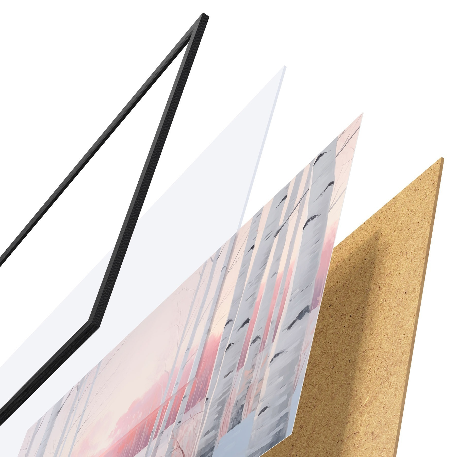 Plagát sa skladá z rámu, plexiskla, vytlačeného obrazu a podkladu z drevotriesky. Plagát možno okamžite zavesiť na stenu vďaka úchytom na zadnej strane.