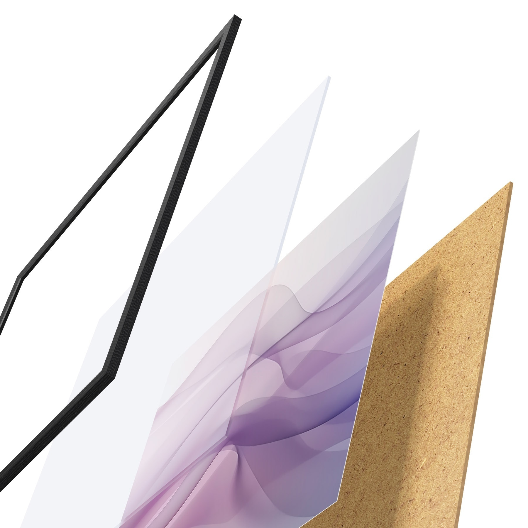 Plagát sa skladá z rámu, plexiskla, vytlačeného obrazu a podkladu z drevotriesky. Plagát možno okamžite zavesiť na stenu vďaka úchytom na zadnej strane.